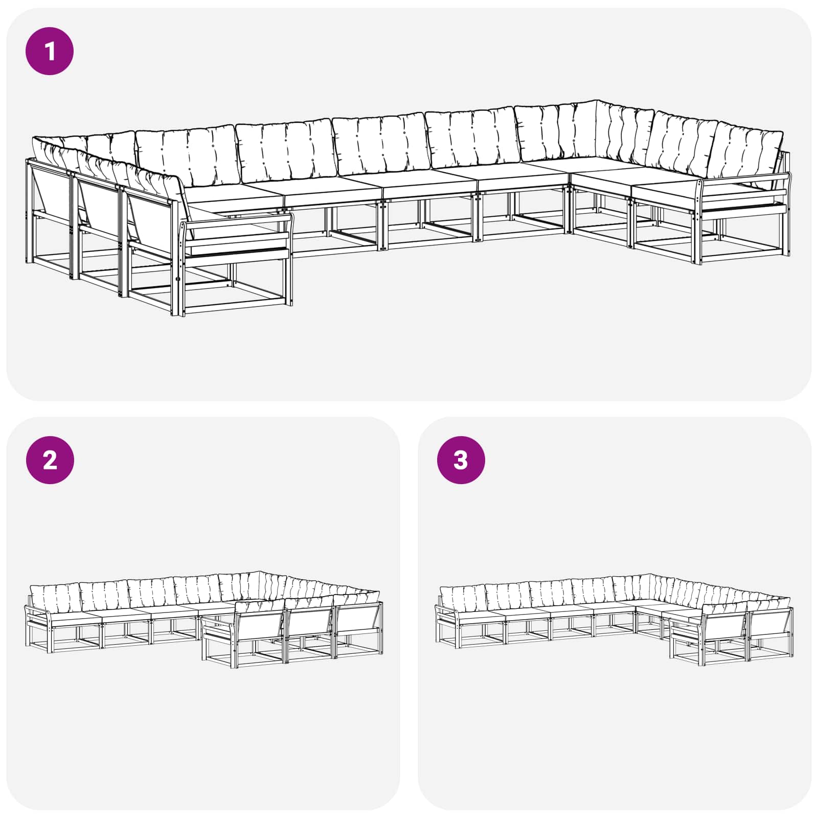 - Funcții practice: Țesătura rezistă la soare și se curăță ușor. Pernele groase sunt ideale pentru șezut confortabil, iar designul ergonomic îți oferă comfort în orice configurație.