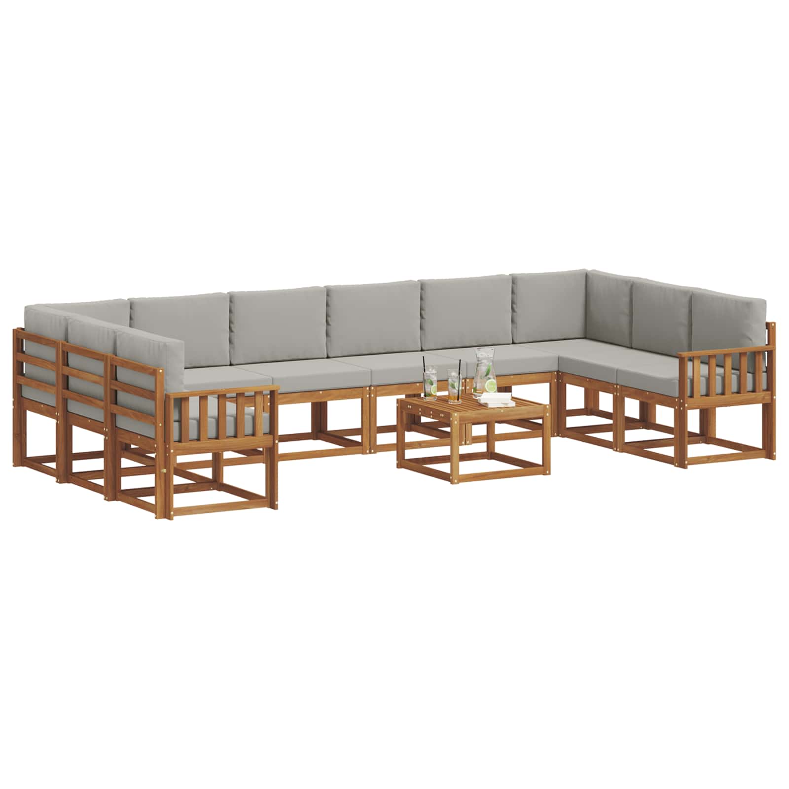 Acest set de canapele secționale pentru exterior se potrivește perfect în peisaje moderne, oferind un loc fain și confortabil pentru diverse spații exterioare. Făcut din lemn masiv de acacia, are un design simplu care îl face să fie o alegere atractivă pentru grădini, terase și locuri lângă piscină. Modularitatea sa oferă flexibilitate, adaptându-se ușor la diverse nevoi de șezut, cu tonuri naturale care creează o atmosferă plăcută atât pentru întâlniri, cât și pentru relaxare.
