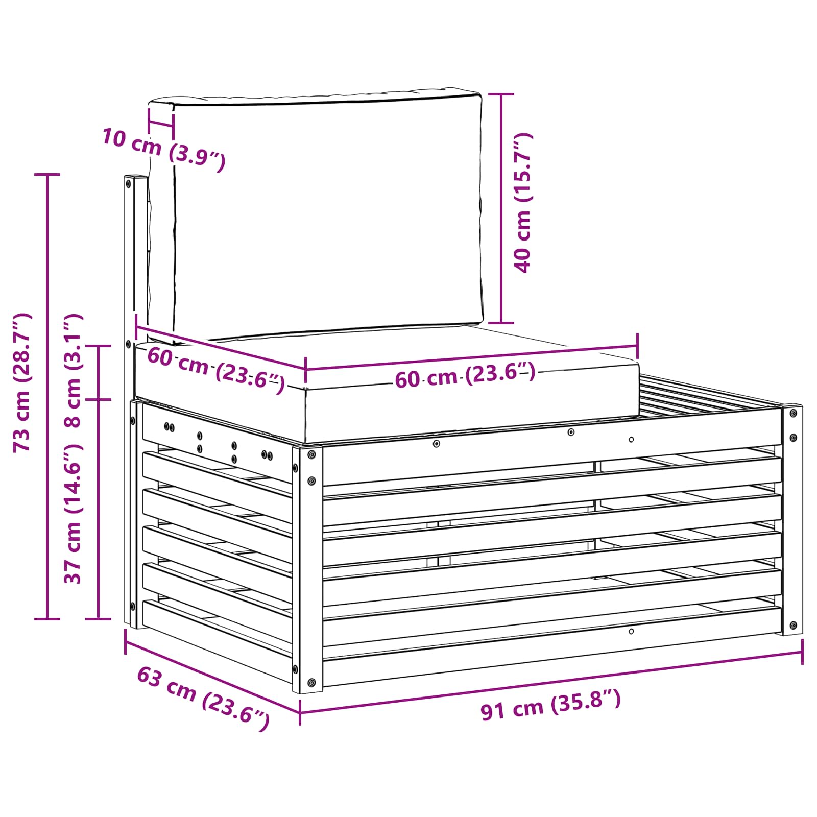 - 2 x Pernă de șezut: 60 x 60 x 8 cm (LxWxH)