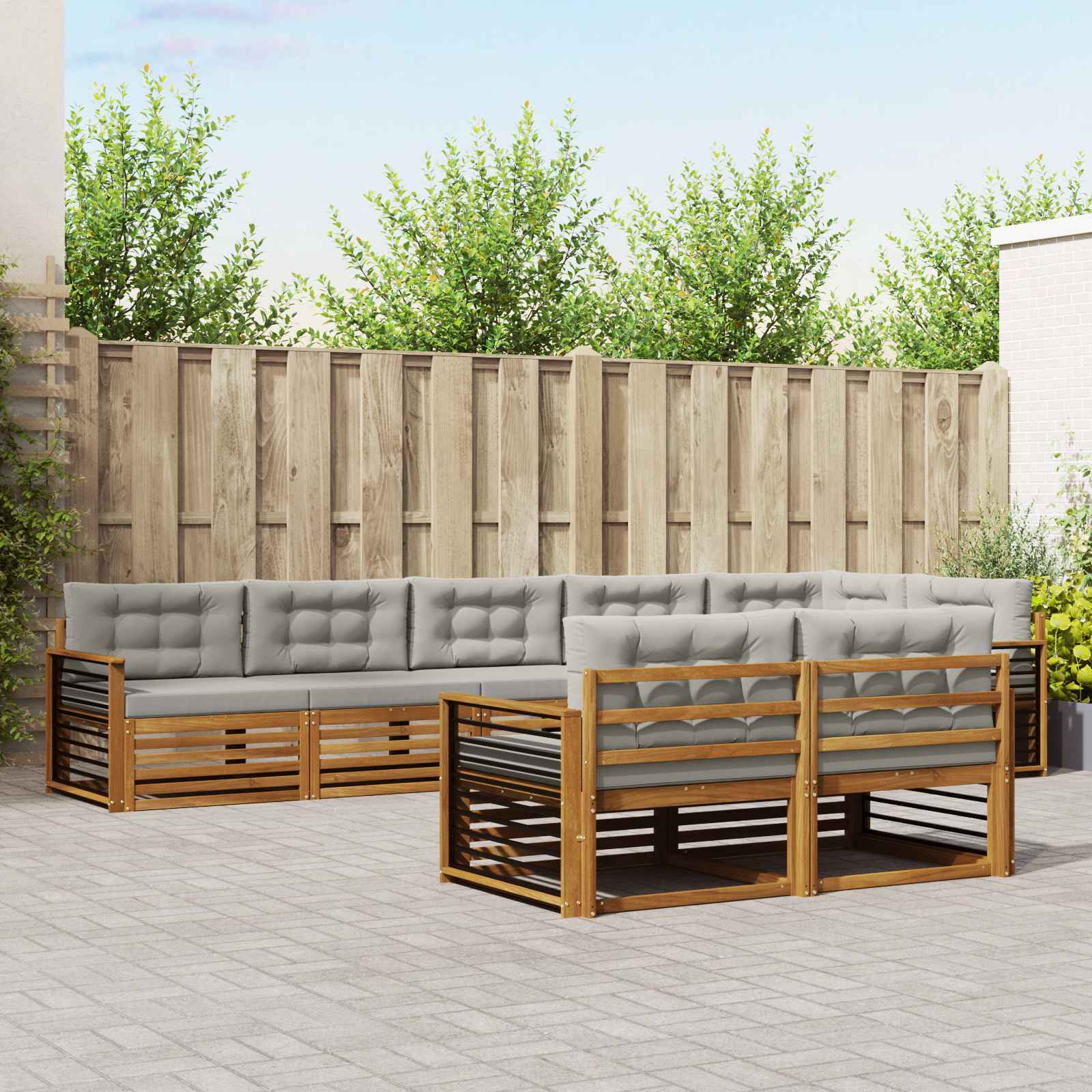 Setul ăsta de canapele pentru exterior combină eleganța modernă cu confortul funcțional, având un design care se potrivește cu orice grădină sau terasă. Arată bine cu un stil minimalist și cu nuanțe frumoase și calde de lemn masiv de acacia. Perfect pentru relaxare afară, setul ăsta e robust dar și flexibil, permițându-ți să-l aranjezi după bunul plac pentru o seară liniștită sau o petrecere cu prietenii. Fiecare piesă nu doar că va îmbunătăți atmosfera grădinii tale, dar va aduce și o vibrație primitoare, fie că ești singur sau în compania altora.