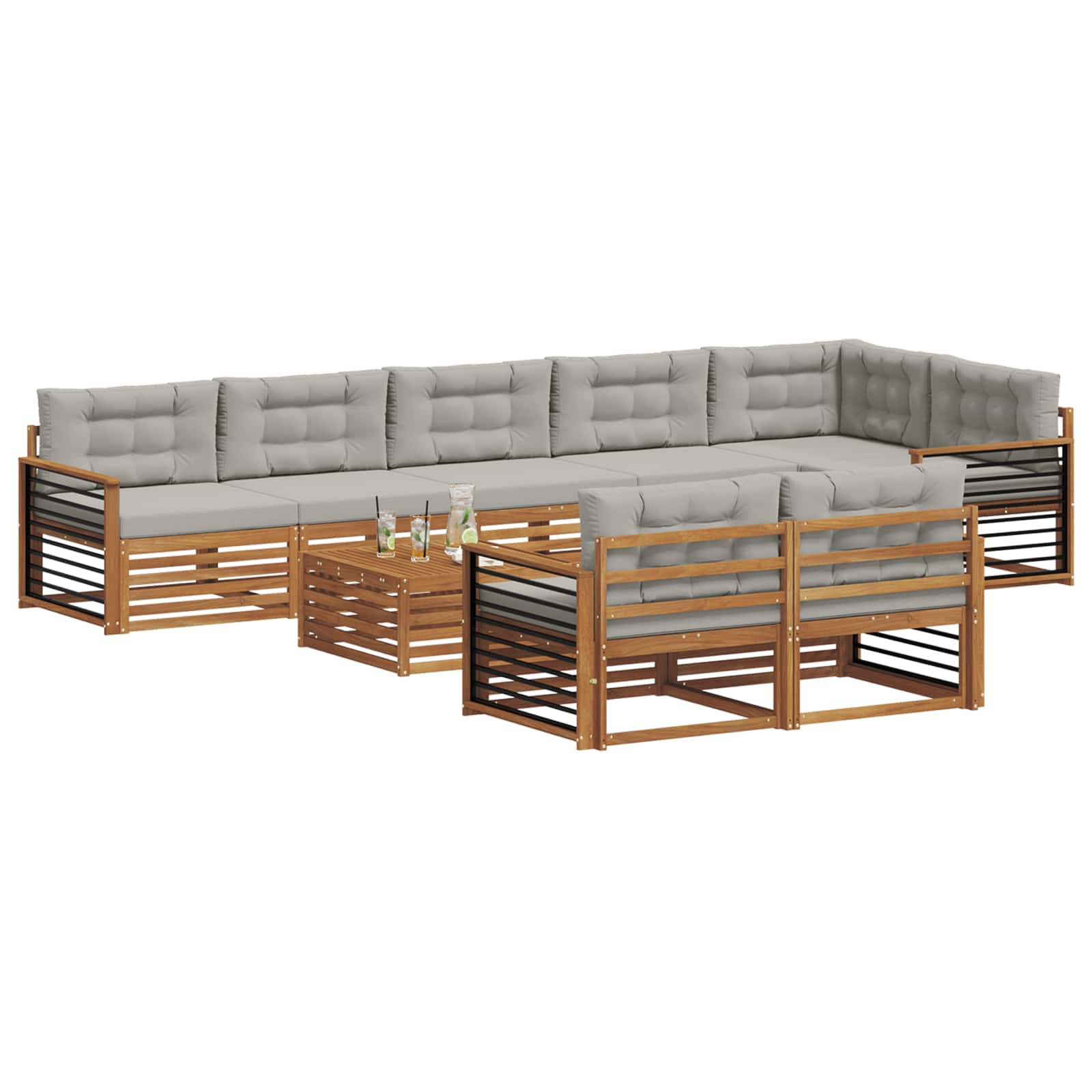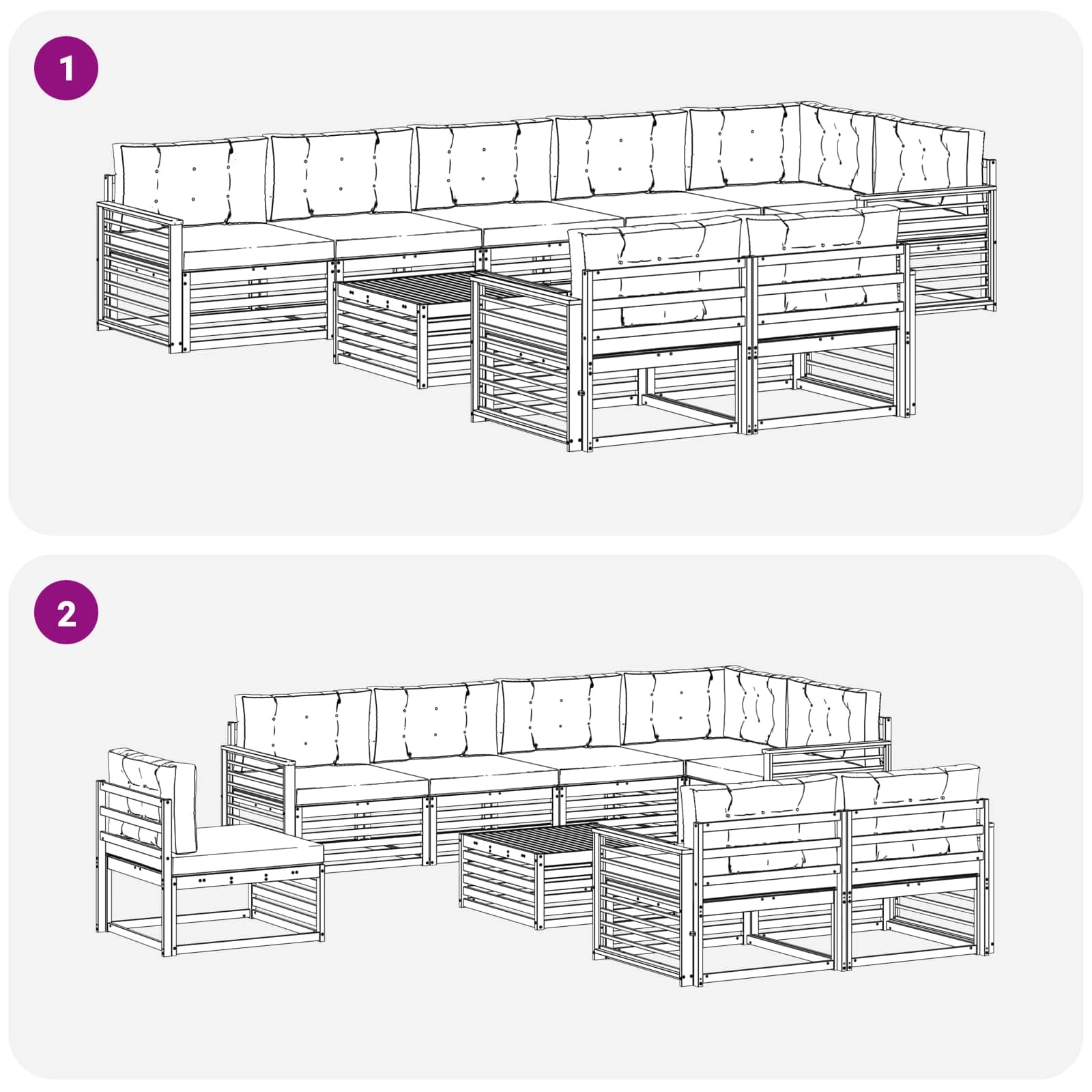 Setul de mobilier de exterior îmbină stilul cu funcționalitatea, creând un punct de atracție în orice grădină sau terasă. Designul său modern, cu linii curate și detalii minime, oferă eleganță și susține relaxarea și socializarea în aer liber. Fabricat din lemn masiv de acacia, setul este durabil și atrăgător, fiind alegerea perfectă pentru cei care doresc atât funcționalitate, cât și un design rafinat în mobilierul de exterior.