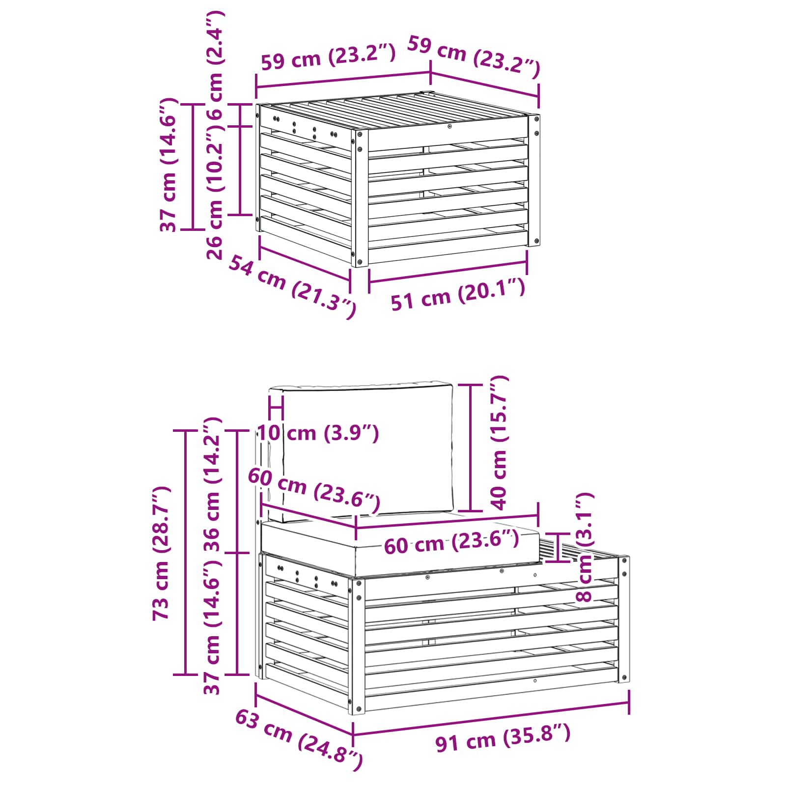 - 2 x Perne de șezut: 60 x 60 x 8 cm (LxWxH)