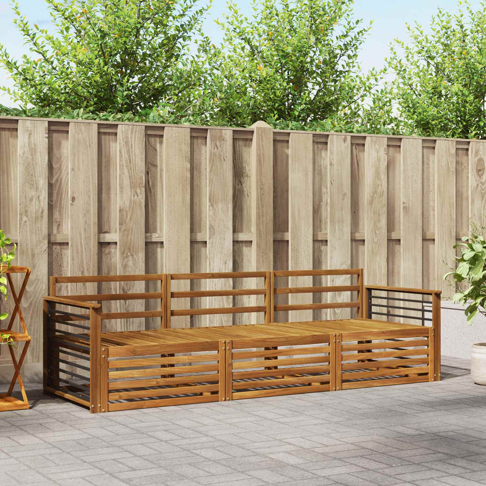 Setul ăsta de mobilier pentru exterior îmbină stilul cu funcționalitatea, creând un punct de interes pentru orice grădină sau terasă. Designul lui modern, cu linii clare și detalii simple, adaugă un plus de eleganță și favorizează momentele de relaxare și întâlnirile sociale afară. Fabricat din lemn masiv de acacia, setul e durabil și estetic, fiind alegerea perfectă pentru cei care caută un mix de utilitate și un design rafinat pentru mobilierul de exterior.
