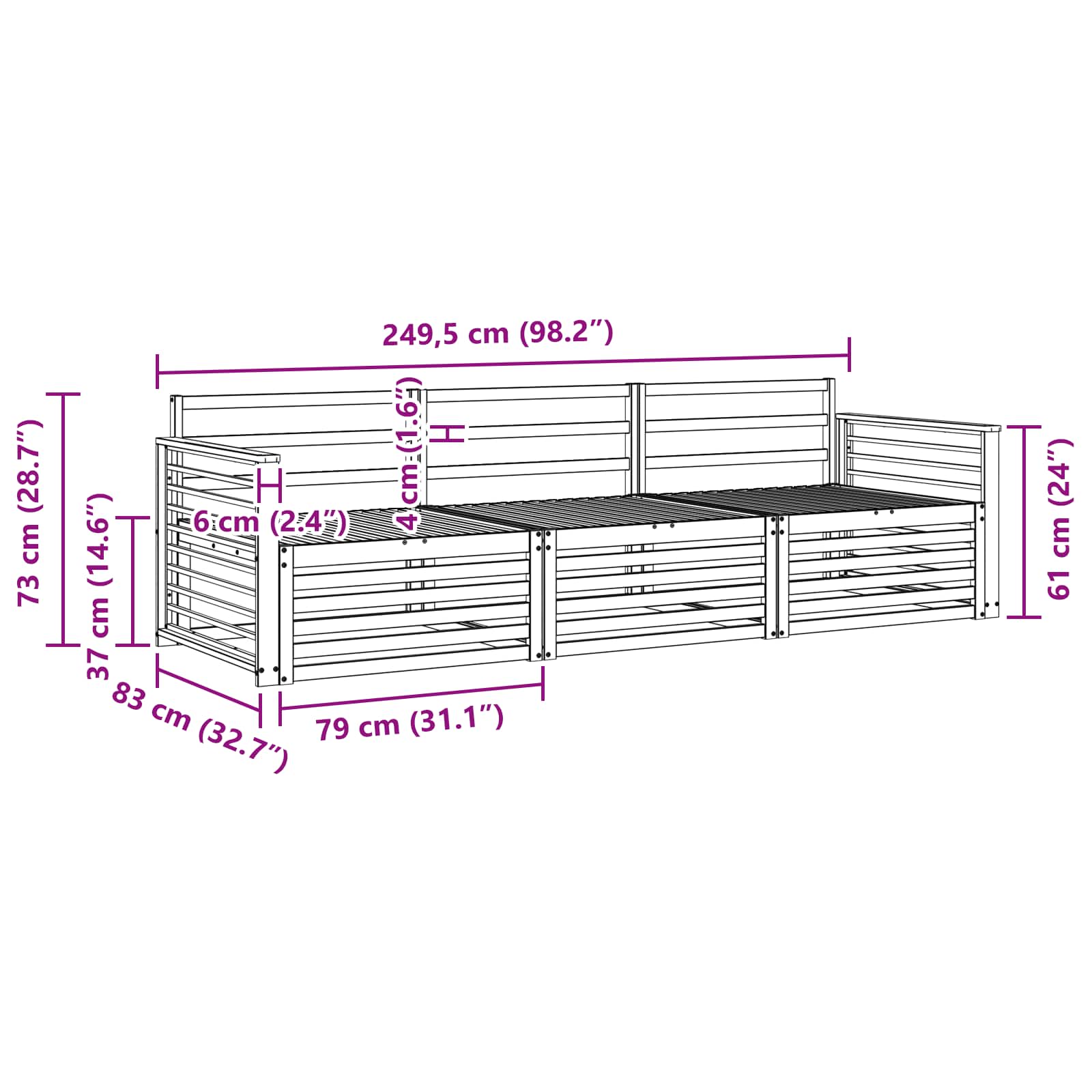 - Dimensiuni generale: 249,5 x 83 x 73 cm (L x l x î)