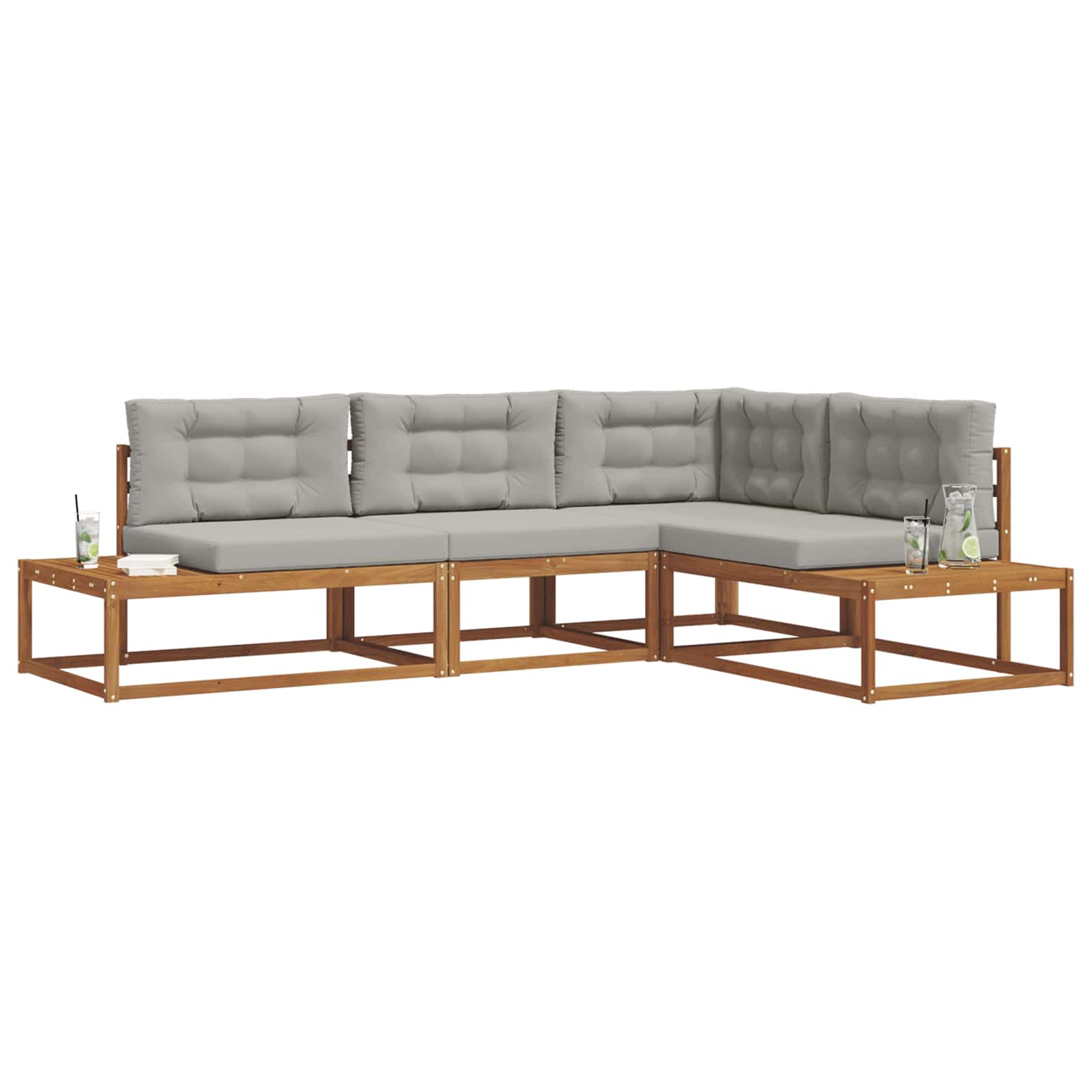 Setul de canapea secțională pentru exterior îți transformă complet relaxarea în aer liber, având un design elegant și construit să reziste. E perfect pentru terase, grădini sau balcoane, oferind un spațiu primitor și stylish pentru a te destinde. Cu un design modern și linii simple, îmbină funcționalitatea cu stilul, potrivindu-se în orice decor. Lemnul masiv de acacia nu doar că arată bine, dar e și foarte rezistent la intemperii, ideal pentru nevoile tale de șezut. Cu acest set versatil, poți să transformi zona ta de exterior într-un loc plăcut pentru serile cu prietenii sau pentru momente de liniște.