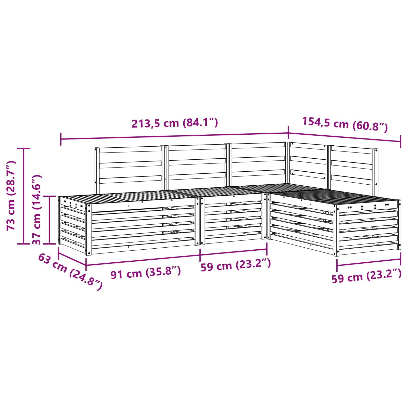 - 1 x canapea colț: 63 x 63 x 73 cm (LxWxH)
