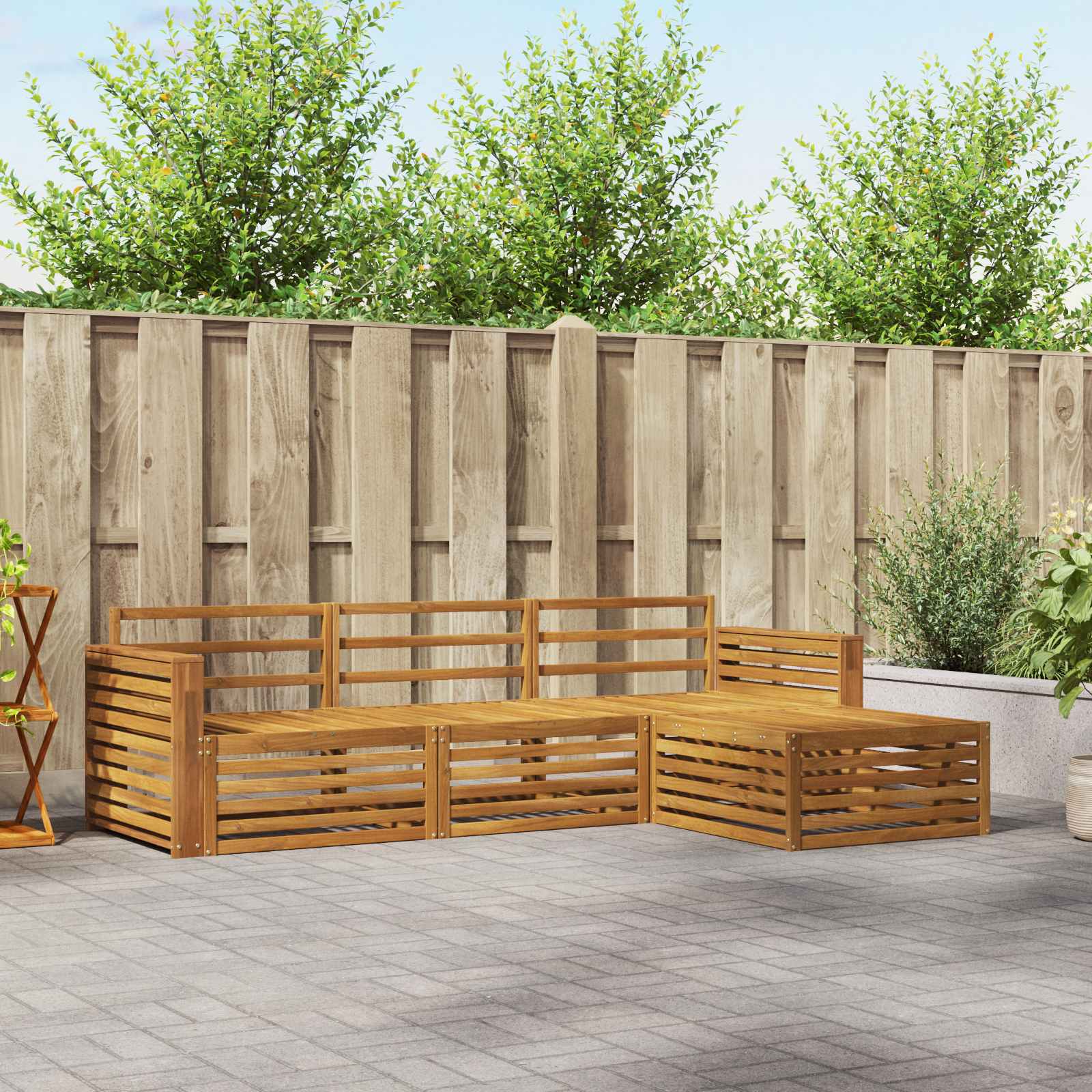 Setul de mobilier pentru exterior îmbină stilul cu funcționalitatea, creând un punct de atracție pentru orice grădină sau terasă. Designul său modern, cu linii clare și detalii simple, adaugă un pic de eleganță și e perfect pentru relaxare sau întâlniri în aer liber. Făcut din lemn masiv de acacia, asigură durabilitate și un aspect vizual pe care-l poți aprecia mult timp, fiind exact ce trebuie pentru cine caută atât utilitate, cât și un look rafinat.