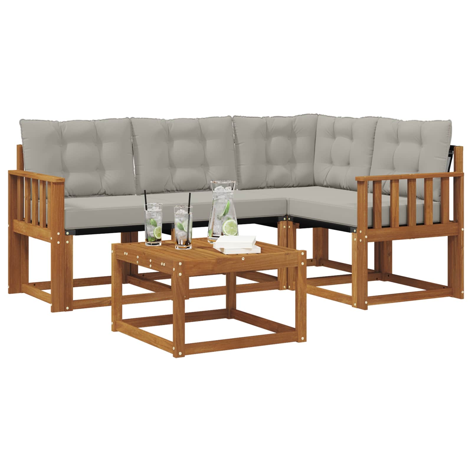 Set de canapele de exterior 5 pcs Gri natural și deschis GartenMobel Dekor