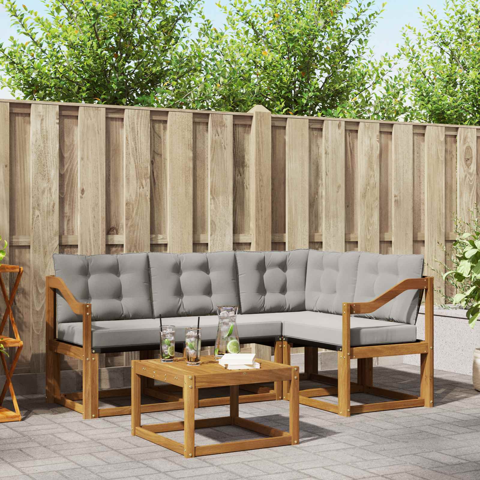 - Material: Lemn solid de acacia și textilene