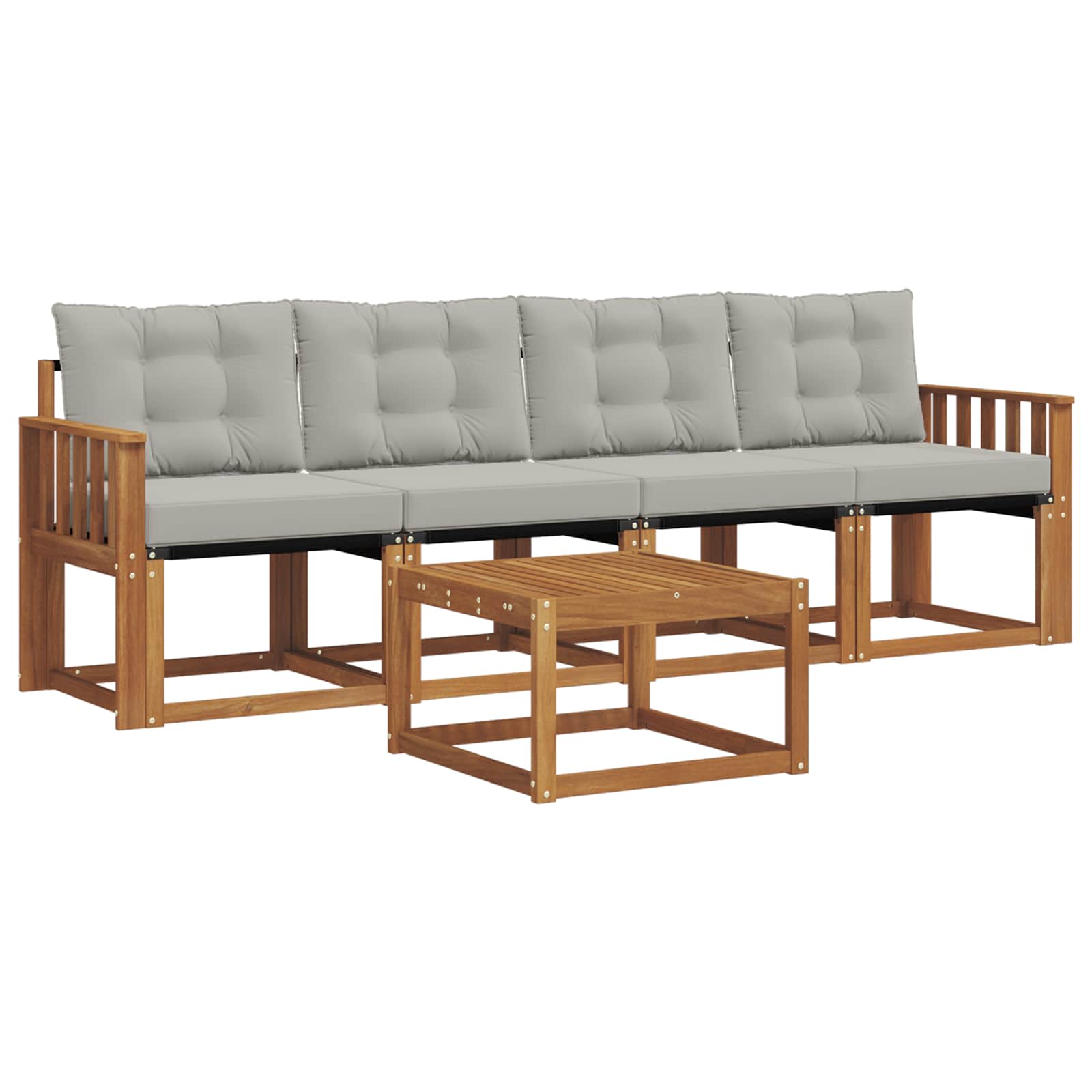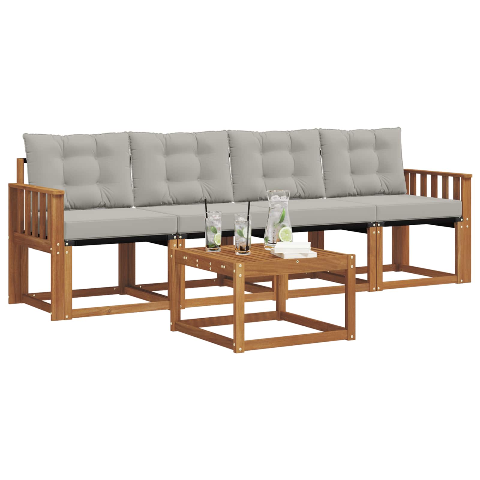 Acest set de mobilier de exterior combină stilul cu funcționalitatea, fiind o piesă centrală adorabilă pentru orice grădină sau terasă. Designul modern, cu linii curate și detalii simple, aduce eleganță și încurajează relaxarea în aer liber și întâlnirile cu prietenii. Făcut din lemn masiv de acacia, setul e durabil și arată bine mult timp, fiind alegerea perfectă pentru cei care vor un mobilier practic și cu un design elegant.