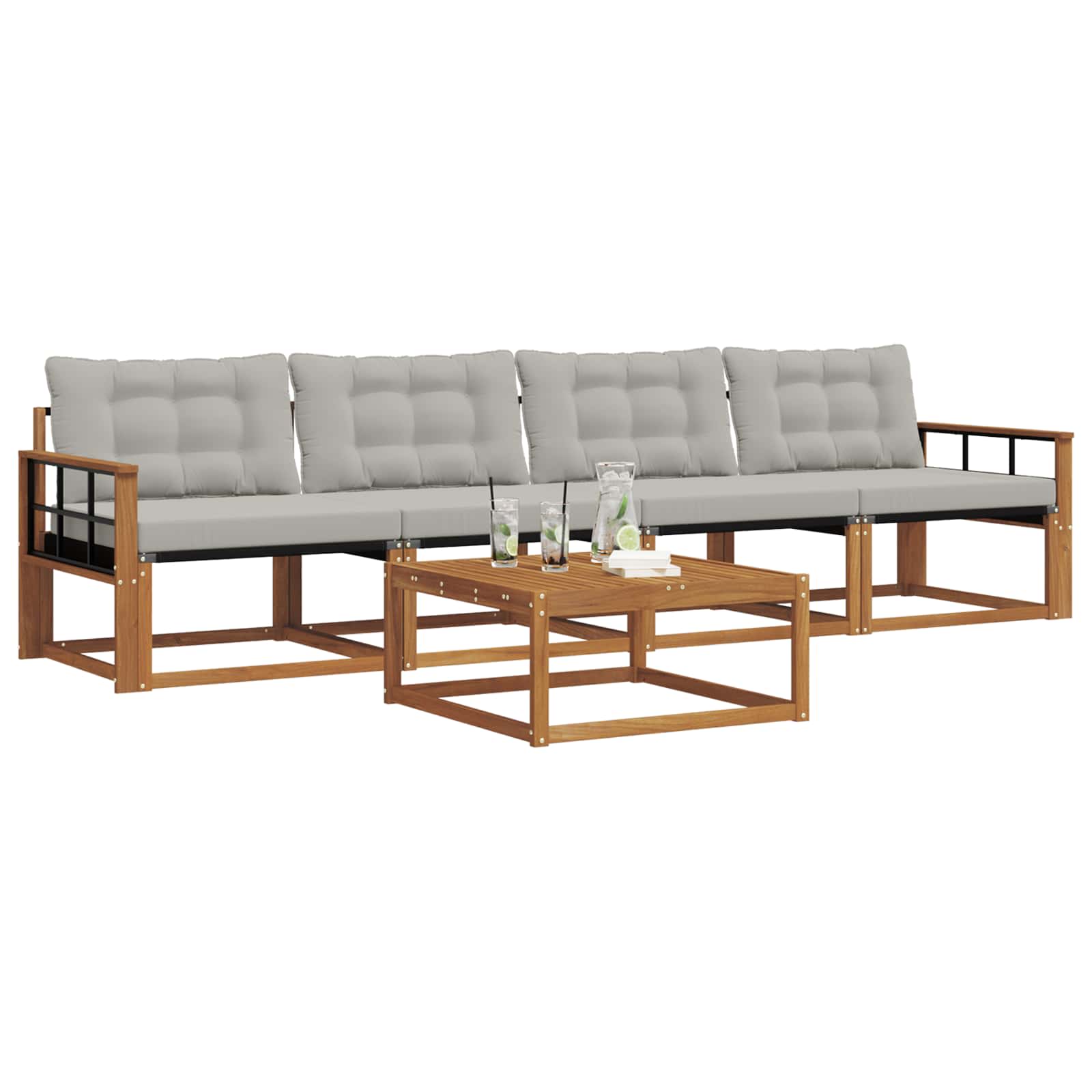 Setul de mobilier pentru exterior combină stilul cu funcționalitatea, devenind un punct de interes în orice grădină sau pe terasă. Designul său modern, cu linii curate și detalii simple, adaugă eleganță, facilitând relaxarea și întâlnirile în aer liber. Fabricat din lemn masiv de acacia, acest set e rezistent și arată bine pe termen lung, fiind perfect pentru cei care caută ceva practic dar și stylish în mobilierul de exterior.