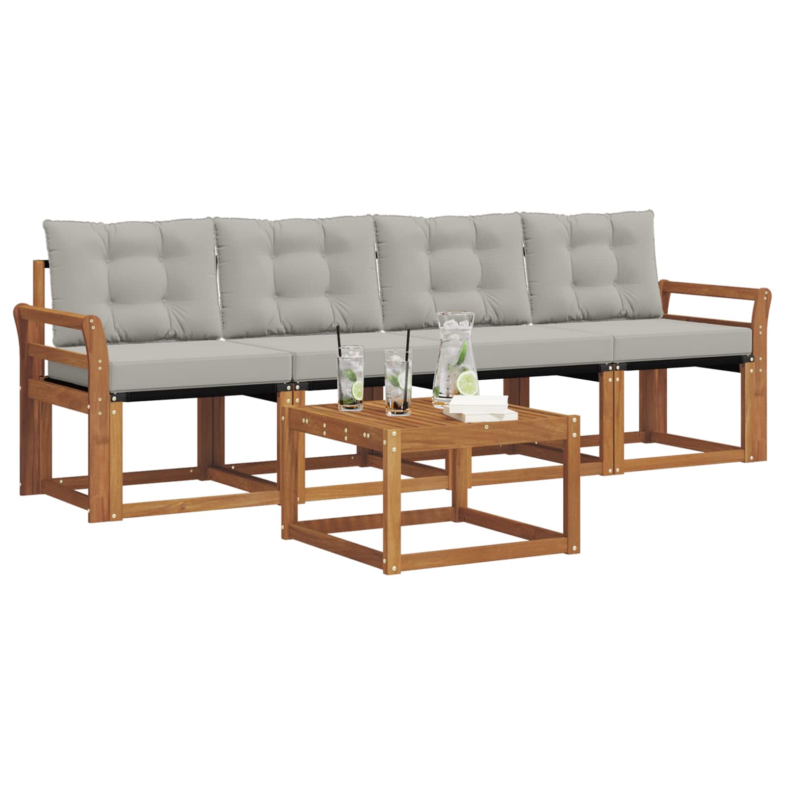 Acest set de mobilier de exterior combină stilul cu funcționalitatea, fiind o piesă centrală adorabilă pentru orice grădină sau terasă. Designul modern, cu linii curate și detalii simple, aduce eleganță și încurajează relaxarea în aer liber și întâlnirile cu prietenii. Făcut din lemn masiv de acacia, setul e durabil și arată bine mult timp, fiind alegerea perfectă pentru cei care vor un mobilier practic și cu un design elegant.