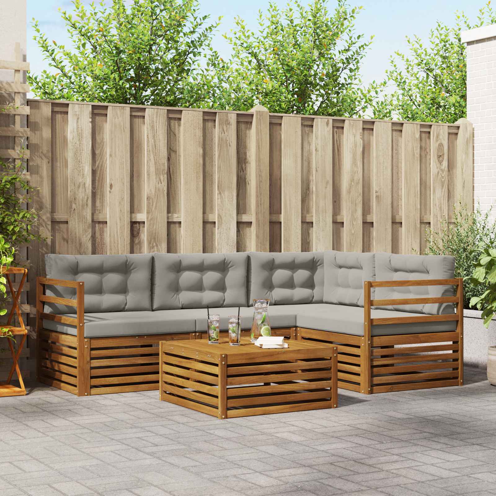 Setul ăsta de mobilier pentru exterior combină stilul și funcționalitatea, creând un punct focal strălucitor pentru orice grădină sau terasă. Designul lui modern, cu linii clare și detalii subtile, adaugă eleganță în timp ce încurajează relaxarea și întâlnirile sociale afară. E făcut din lemn de acacia masiv, care asigură durabilitate și un aspect plăcut pe termen lung, fiind ideal pentru cei care caută atât practicitate, cât și un design sofisticat pentru mobilierul de exterior.