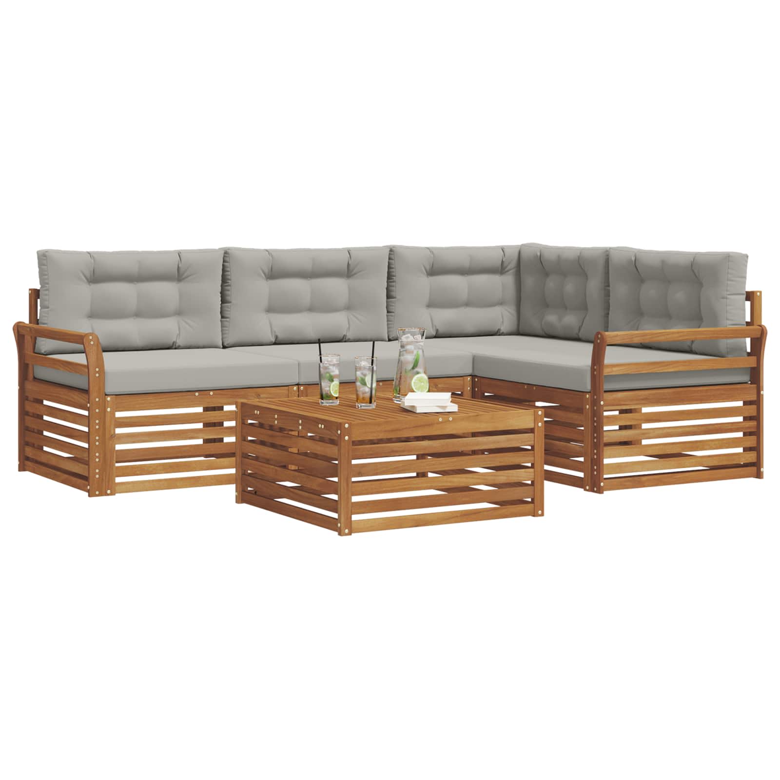 Setul ăsta de mobilier pentru exterior combină stilul și funcționalitatea, creând un punct focal strălucitor pentru orice grădină sau terasă. Designul lui modern, cu linii clare și detalii subtile, adaugă eleganță în timp ce încurajează relaxarea și întâlnirile sociale afară. E făcut din lemn de acacia masiv, care asigură durabilitate și un aspect plăcut pe termen lung, fiind ideal pentru cei care caută atât practicitate, cât și un design sofisticat pentru mobilierul de exterior.