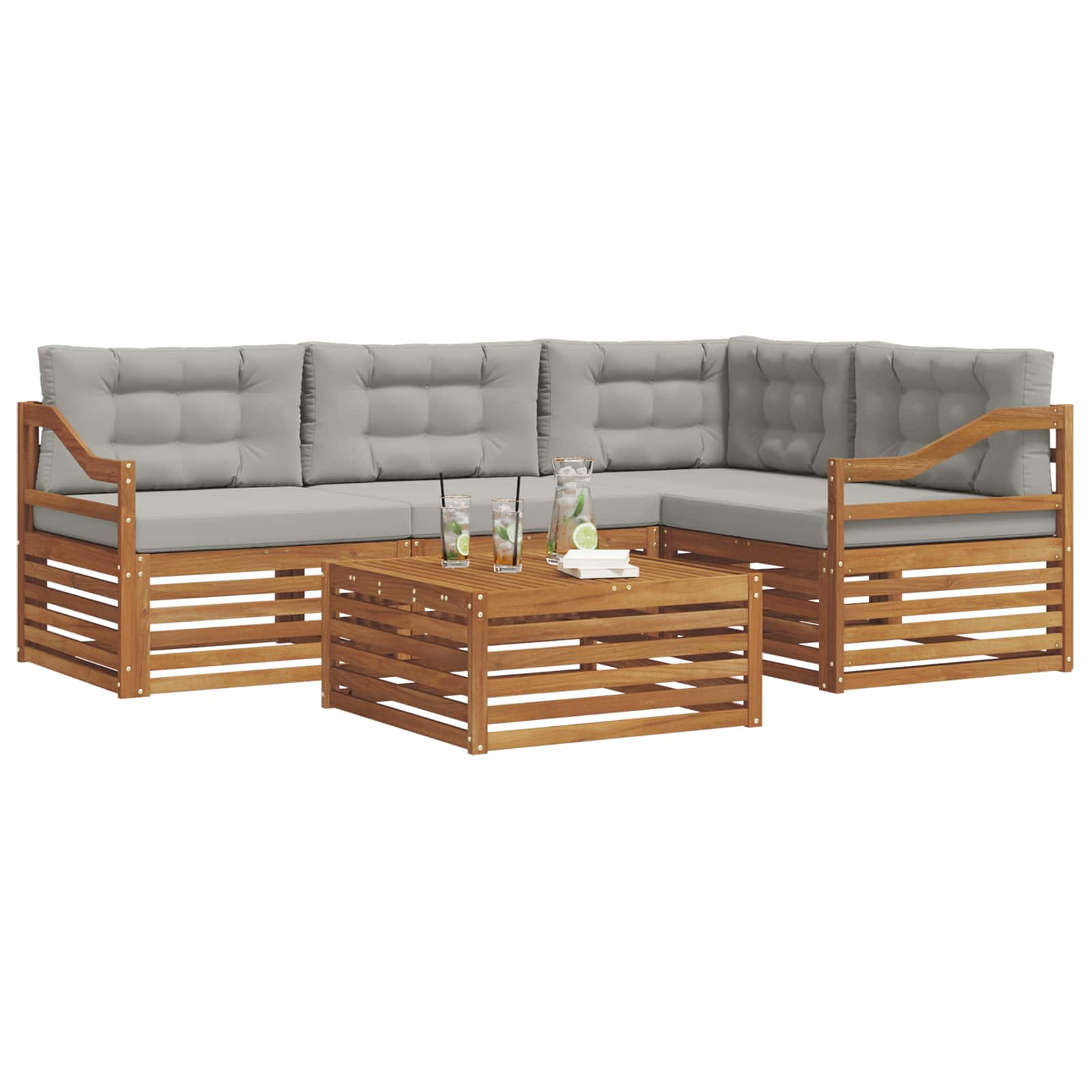 Setul ăsta de mobilier pentru exterior combină stilul și funcționalitatea, creând un punct focal strălucitor pentru orice grădină sau terasă. Designul lui modern, cu linii clare și detalii subtile, adaugă eleganță în timp ce încurajează relaxarea și întâlnirile sociale afară. E făcut din lemn de acacia masiv, care asigură durabilitate și un aspect plăcut pe termen lung, fiind ideal pentru cei care caută atât practicitate, cât și un design sofisticat pentru mobilierul de exterior.