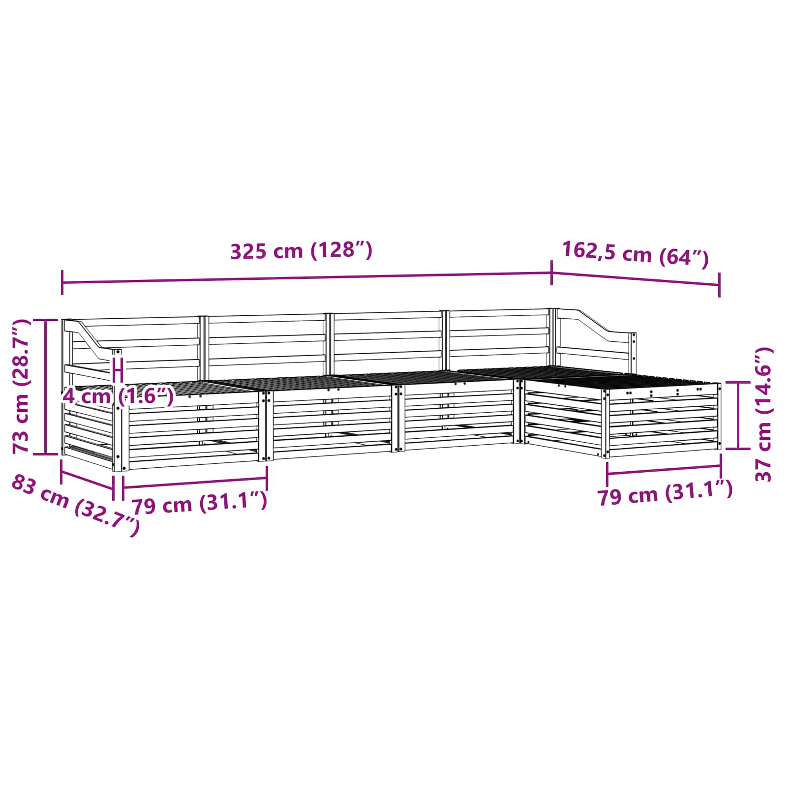 - 4 x Canapea medie: 79 x 83 x 73 cm (LxWxH)