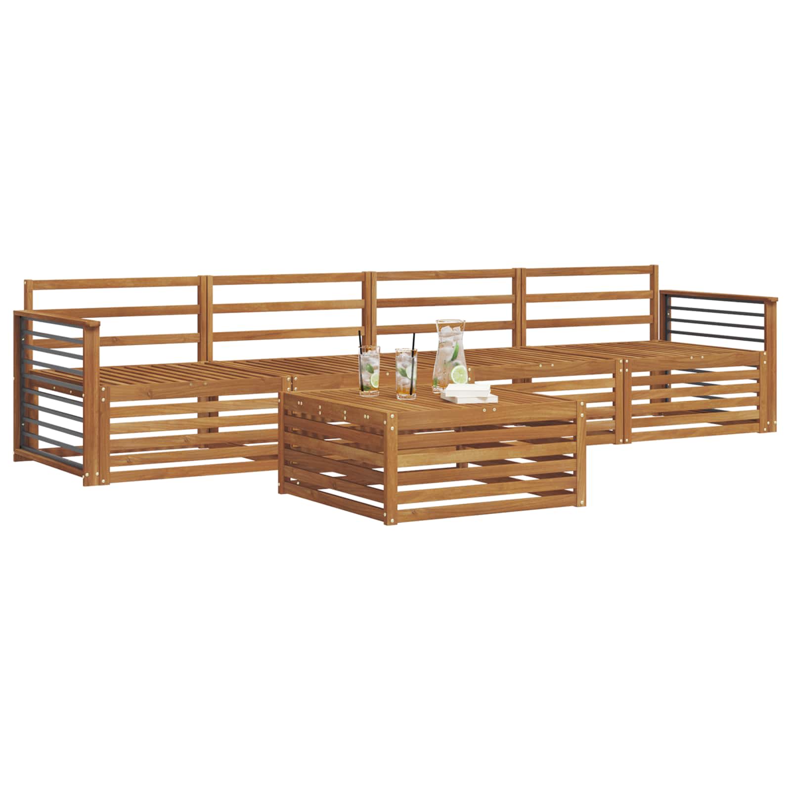 Setul de mobilier pentru exterior combină stilul cu funcționalitatea, devenind un punct de atracție pentru orice grădină sau terasă. Designul său modern, cu linii curate și detalii minime, adaugă eleganță și sprijină relaxarea în aer liber și întâlnirile cu prietenii. Fabricat din lemn masiv de acacia, setul e durabil și are un aspect vizual plăcut pe termen lung, fiind ideal pentru cei care vor atât utilitate, cât și un design atrăgător în exterior.