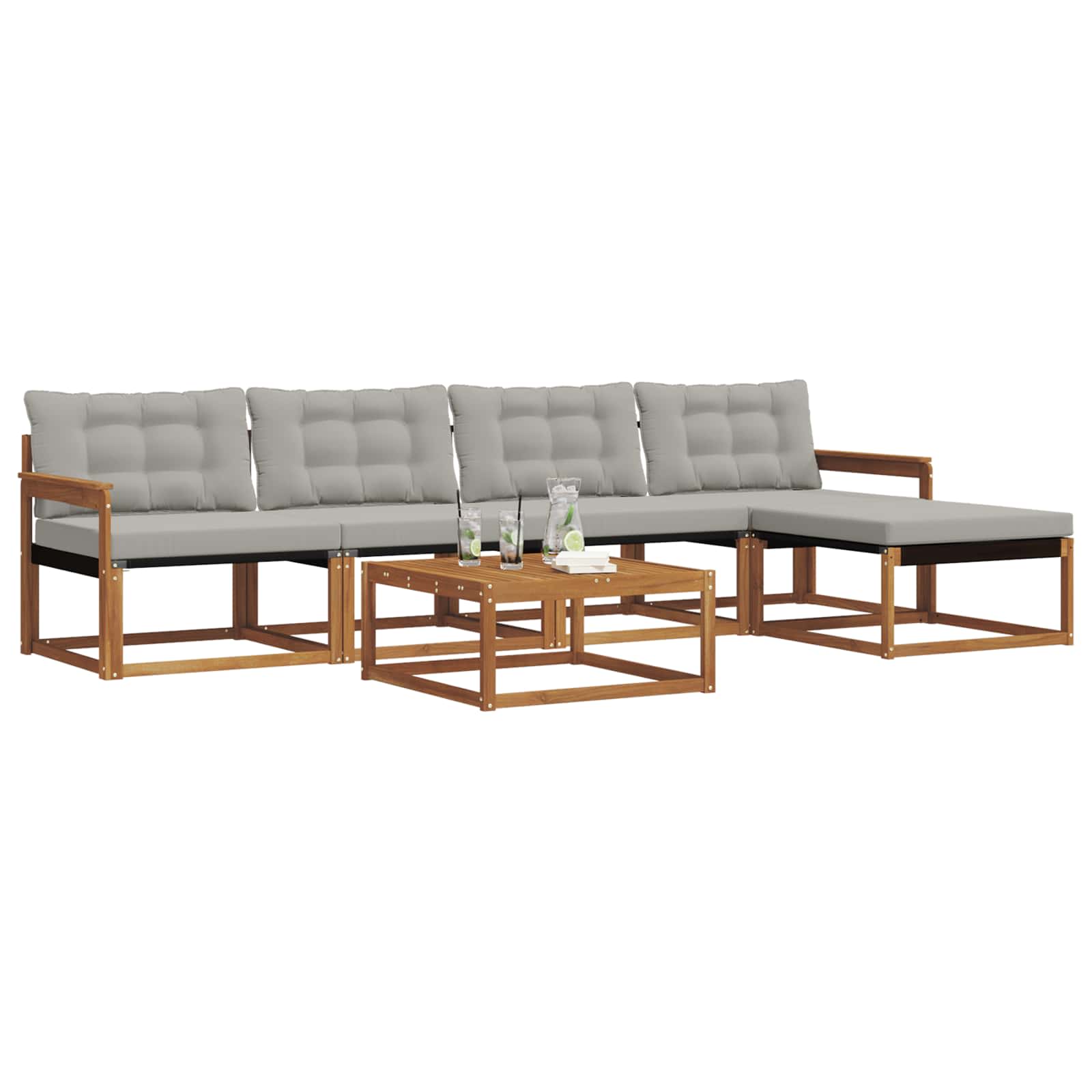 - Materiale premium: Setul e din lemn masiv de acacia și Textilenă, deci e durabil și arată bine. Culorile calde ale lemnului natural se combină perfect cu țesătura sofisticată, fiind o alegere elegantă și de lungă durată pentru exteriorul tău.