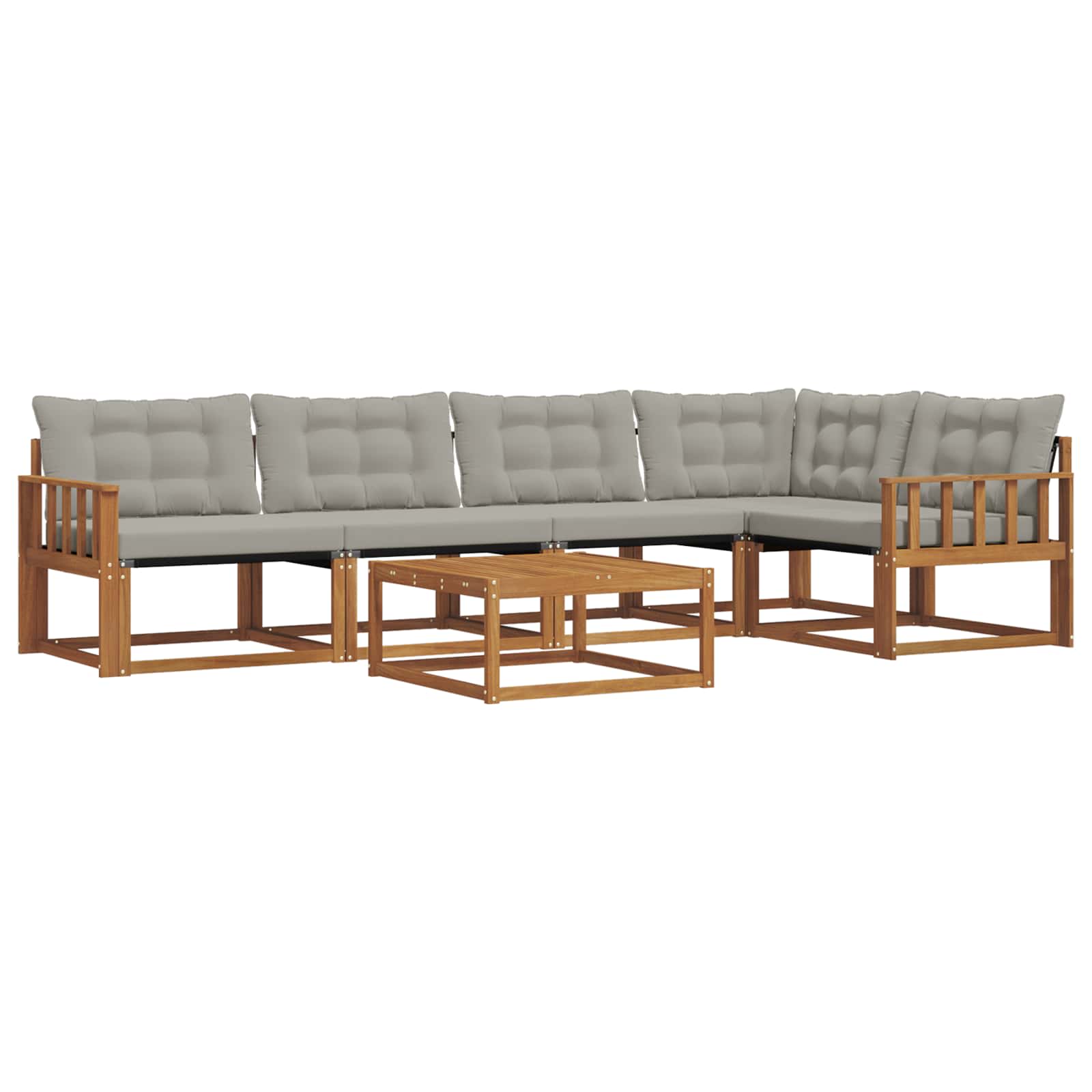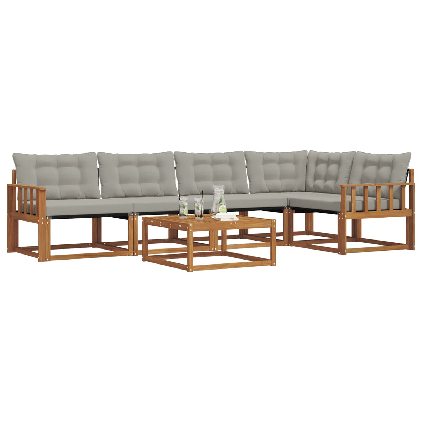 Setul de mobilier de exterior îmbină stilul cu funcționalitatea, creând un punct de atracție pentru grădină sau terasă. Designul modern, cu linii clare și detalii fine, aduce eleganță și completează perfect momentele de relaxare afară. Fabricat din lemn masiv de acacia, acest set e durabil și arată bine mult timp, fiind alegerea ideală pentru cei care caută un mobilier practic și elegant.