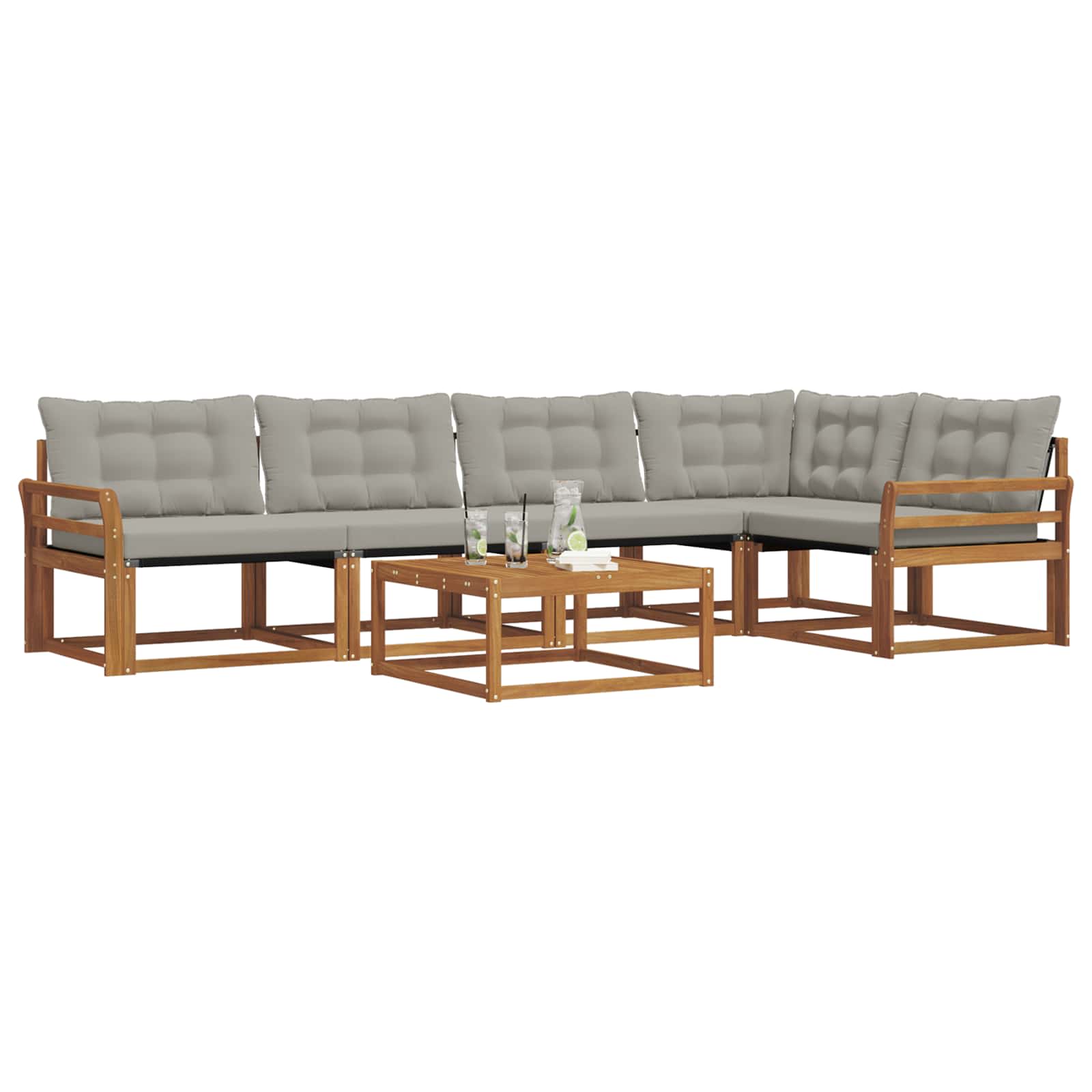 Setul de mobilier de exterior îmbină stilul cu funcționalitatea, creând un punct de atracție pentru grădină sau terasă. Designul modern, cu linii clare și detalii fine, aduce eleganță și completează perfect momentele de relaxare afară. Fabricat din lemn masiv de acacia, acest set e durabil și arată bine mult timp, fiind alegerea ideală pentru cei care caută un mobilier practic și elegant.