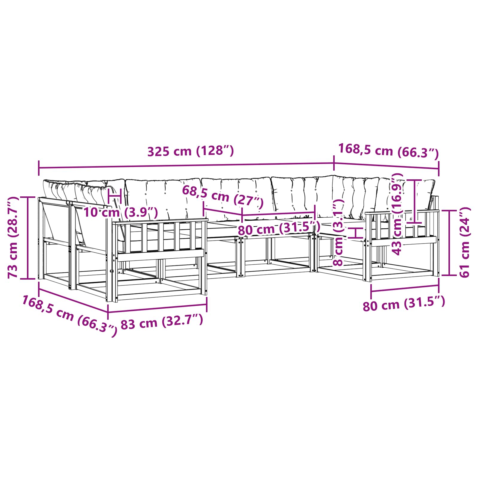 - 8 x Pernă de spate: 80 x 43 x 10 cm (LxWxH)