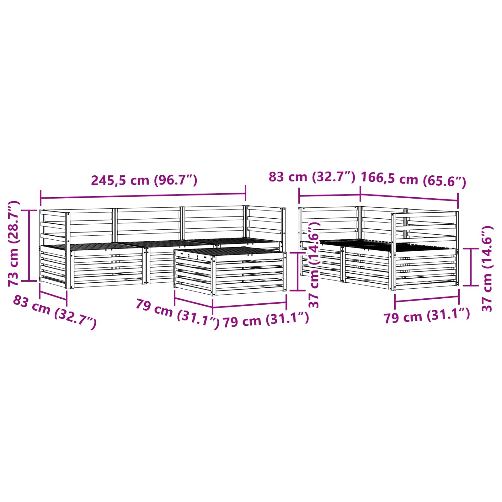 - 5 x Sofa din mijloc: 79 x 83 x 73 cm (LxWxH)