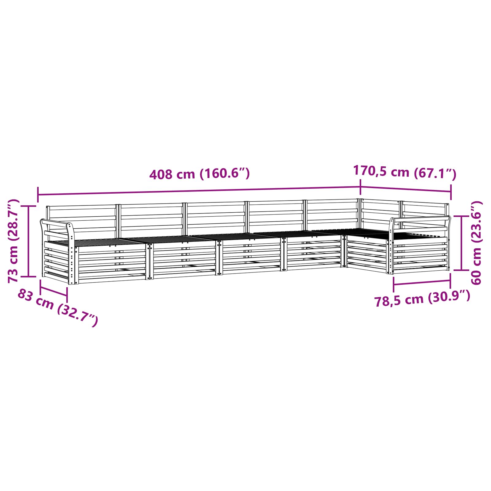 - Dimensiuni generale: 408 x 170,5 x 73 cm (L x l x î)