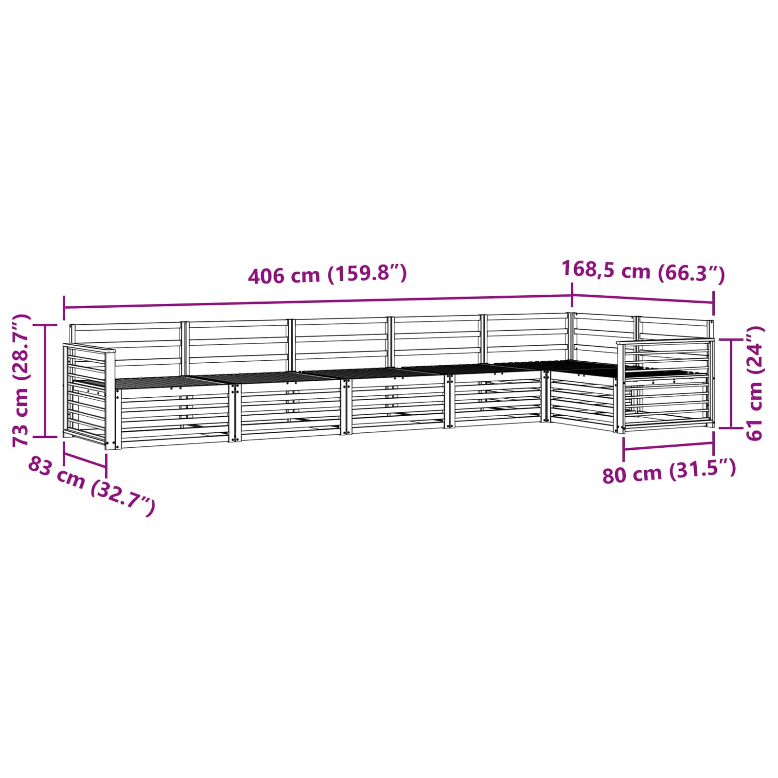 - Dimensiuni generale: 406 x 168,5 x 73 cm (L x l x î)