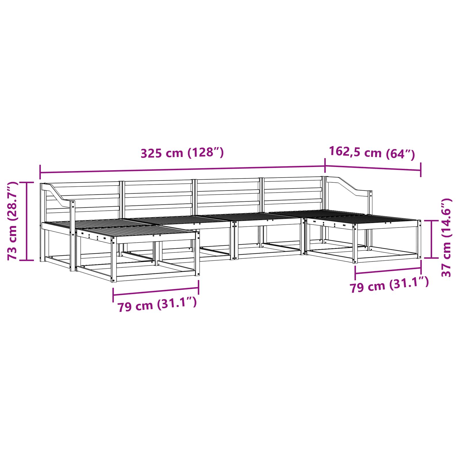 - 4 x Sofa de mijloc: 79 x 83 x 73 cm (LxWxH)