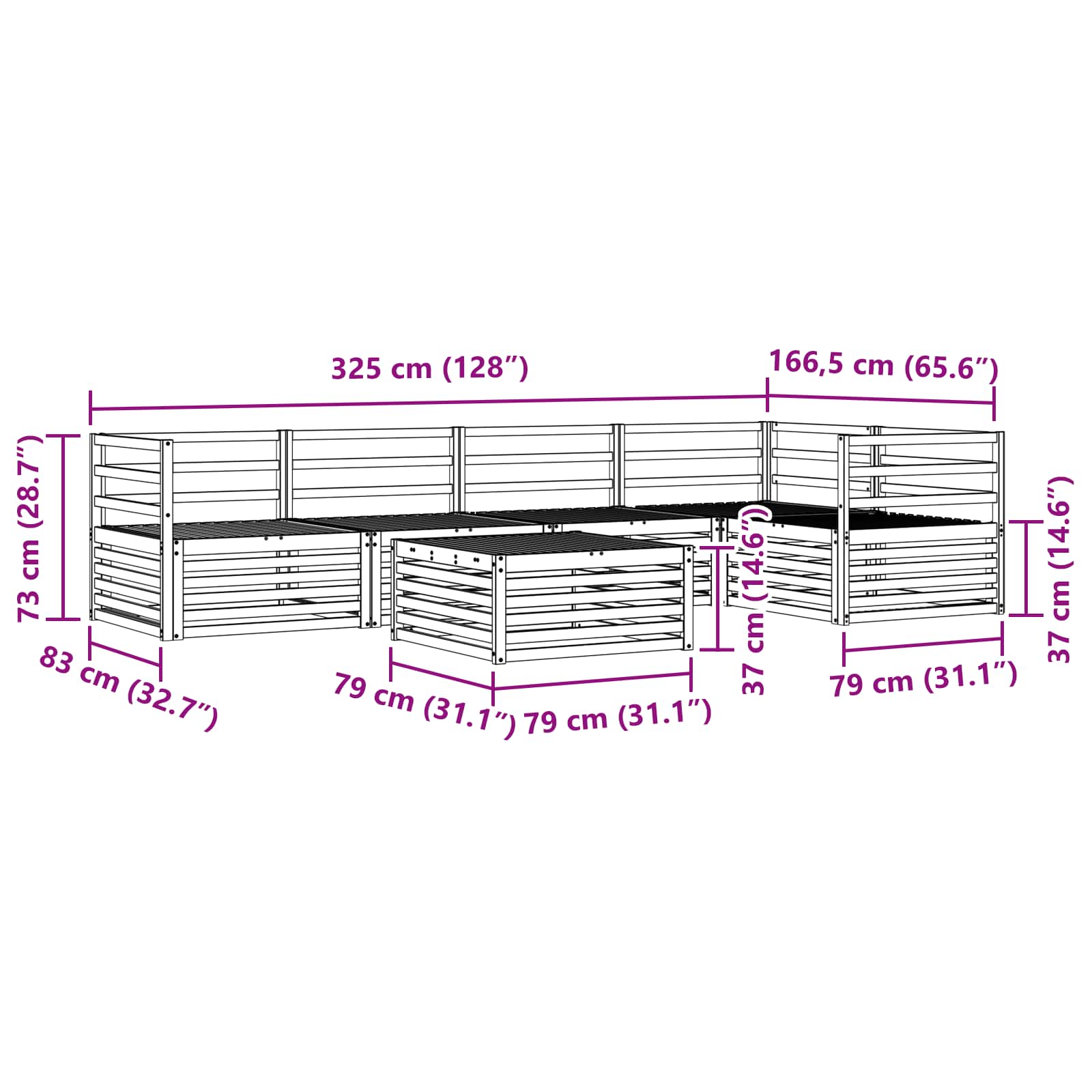 - Dimensiuni generale: 79 x 79 x 37 cm (L x l x î)