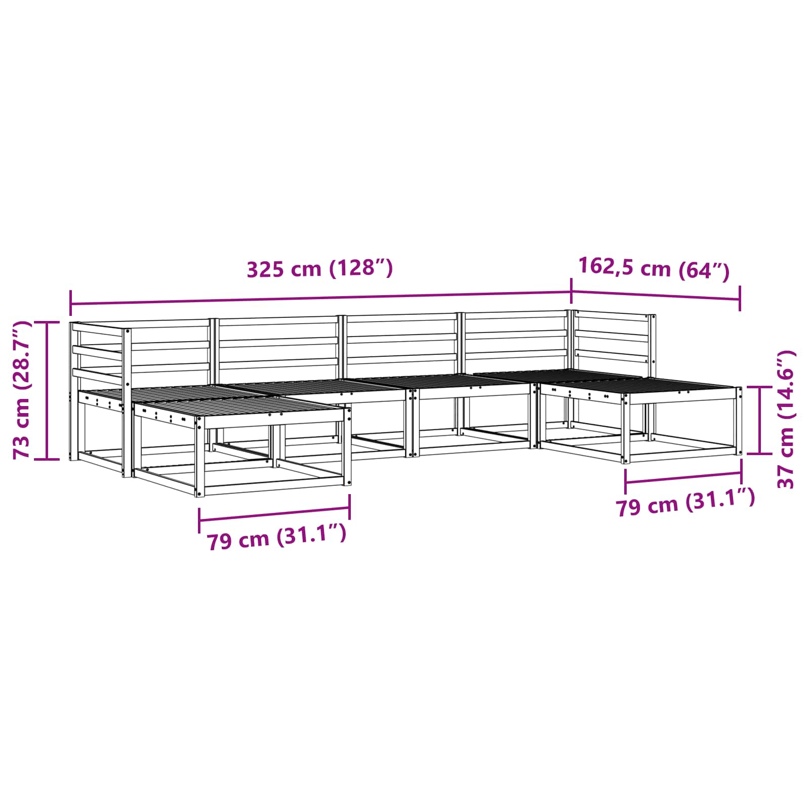 - 4 x Sofa de mijloc: 79 x 83 x 73 cm (LxWxH)