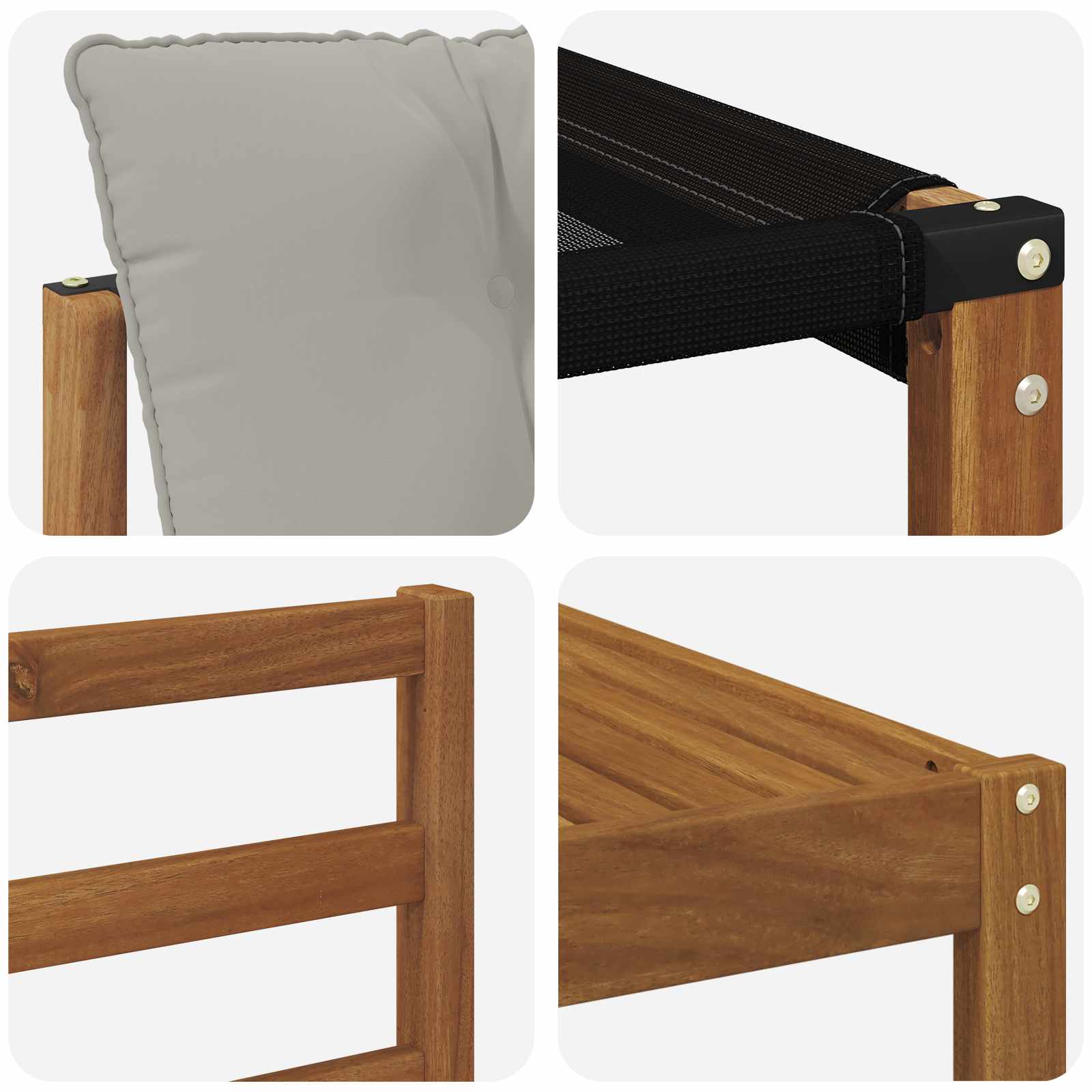 - Material: Lemn solid de acacia și textilene
