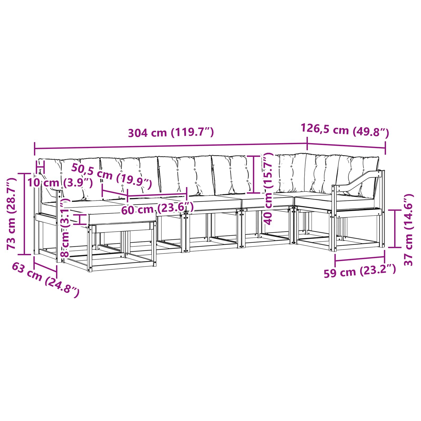 - 7 x Pernă de spate: 60 x 40 x 10 cm (LxWxH)
