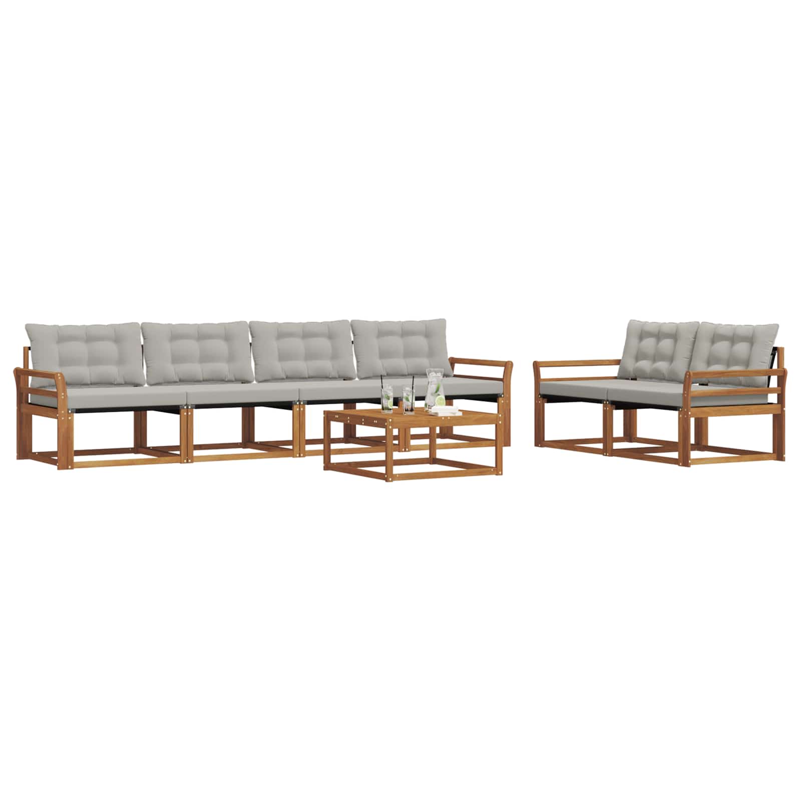 Acest set de mobilier de exterior îmbină stilul cu funcționalitatea, creând un punct de atracție pentru orice grădină sau terasă. Designul modern, cu linii simple și detalii discrete, adaugă eleganță și susține relaxarea și întâlnirile sociale afară. Fabricat din lemn masiv de acacia, setul promite durabilitate și un aspect plăcut, fiind alegerea perfectă pentru cei care caută atât practicitate, cât și un design rafinat în mobilierul de exterior.