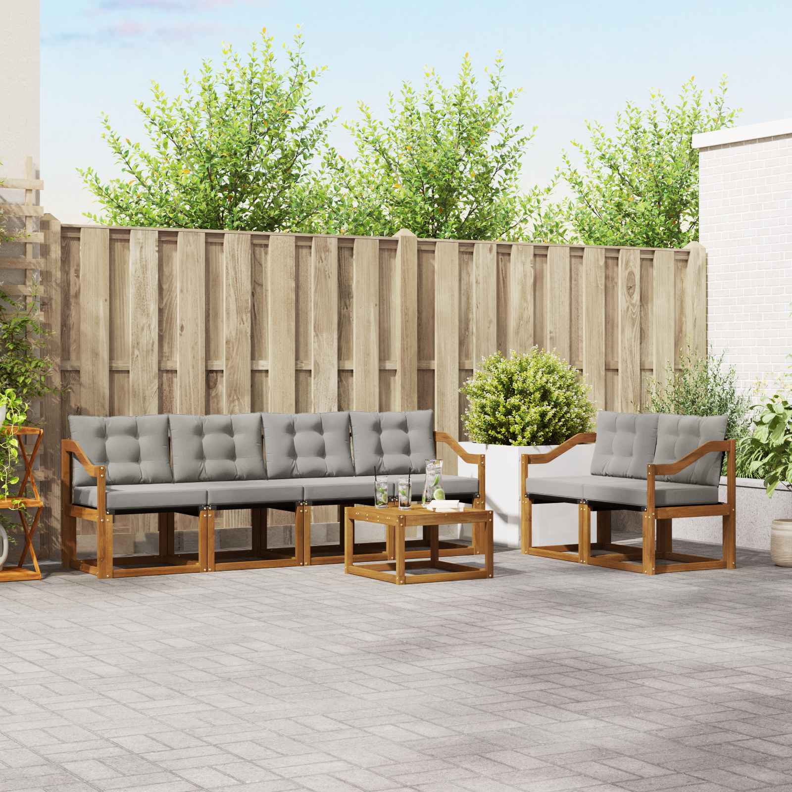 Setul ăsta de mobilier pentru exterior combină stilul cu funcționalitatea și devine punctul de atracție pentru orice grădină sau terasă. Designul modern, cu linii clare și detalii simple, adaugă un strop de eleganță și încurajează relaxarea în aer liber, dar și întâlnirile cu prietenii. Făcut complet din lemn masiv de acacia, setul e super durable și arată bine pe termen lung, fiind perfecta alegere pentru cei care caută practicitate și un design chic în mobilierul de exterior.