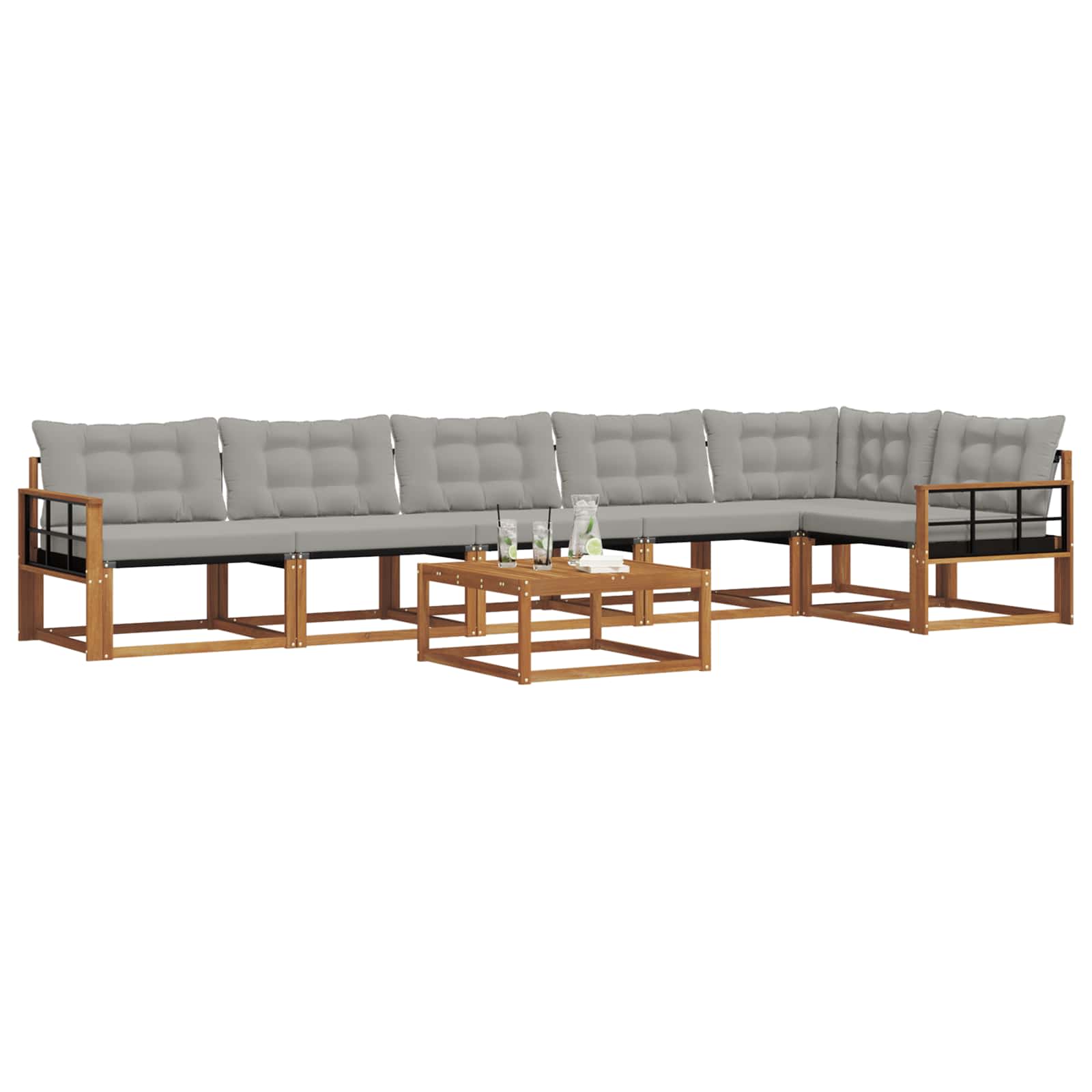 Setul de mobilier pentru exterior îmbină stilul cu funcționalitatea, devenind un punct de atracție pentru orice grădină sau terasă. Designul său modern, cu linii clare și detalii simple, adaugă eleganță, încurajând relaxarea în aer liber și întâlnirile cu prietenii. Făcut din lemn masiv de acacia, setul e durabil și are un aspect care rezistă în timp, fiind alegerea ideală pentru cei care vor mobilă de exterior care să fie practică, dar și rafinată.