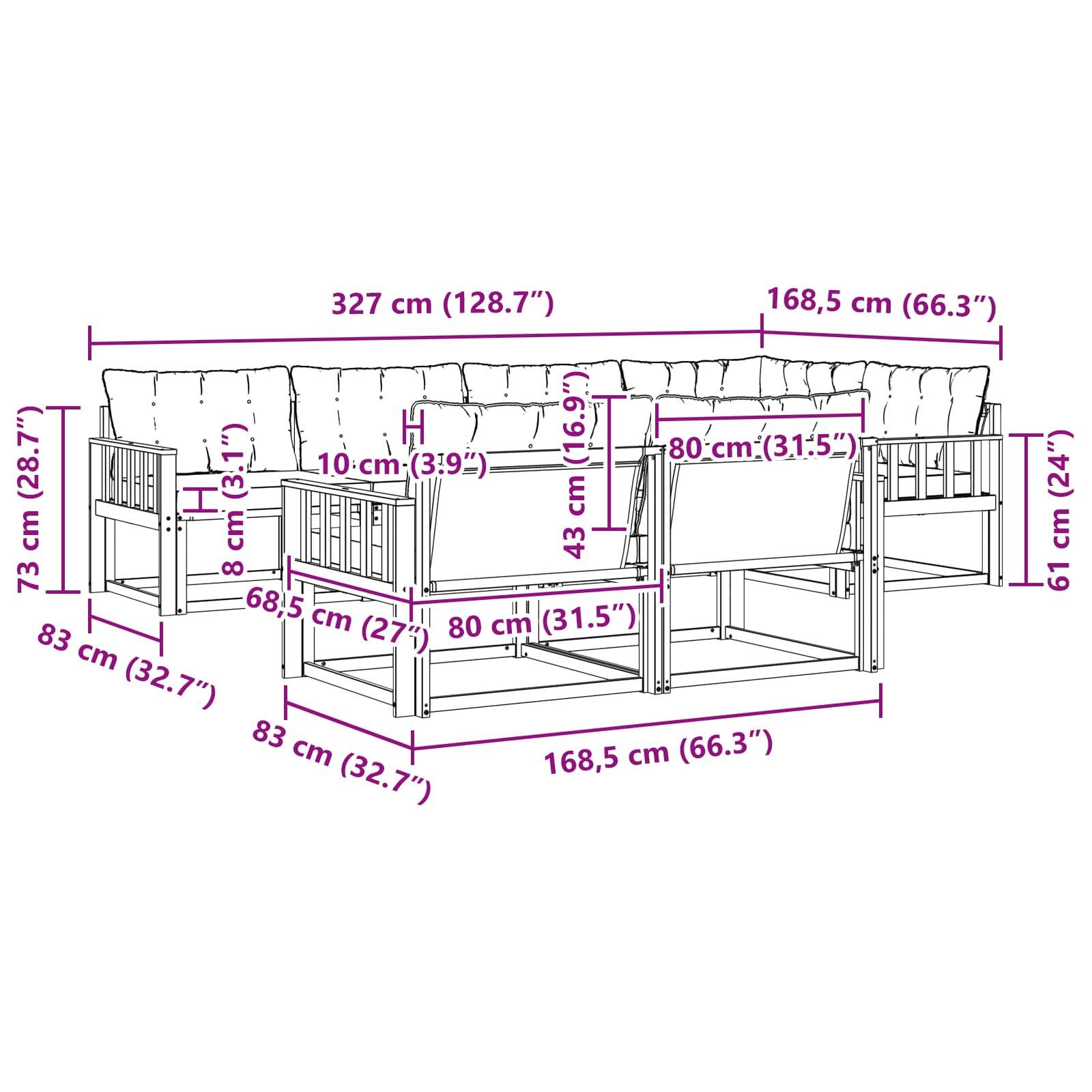- 6 x Pernă pentru șezut: 80 x 68,5 x 8 cm (LxWxH)