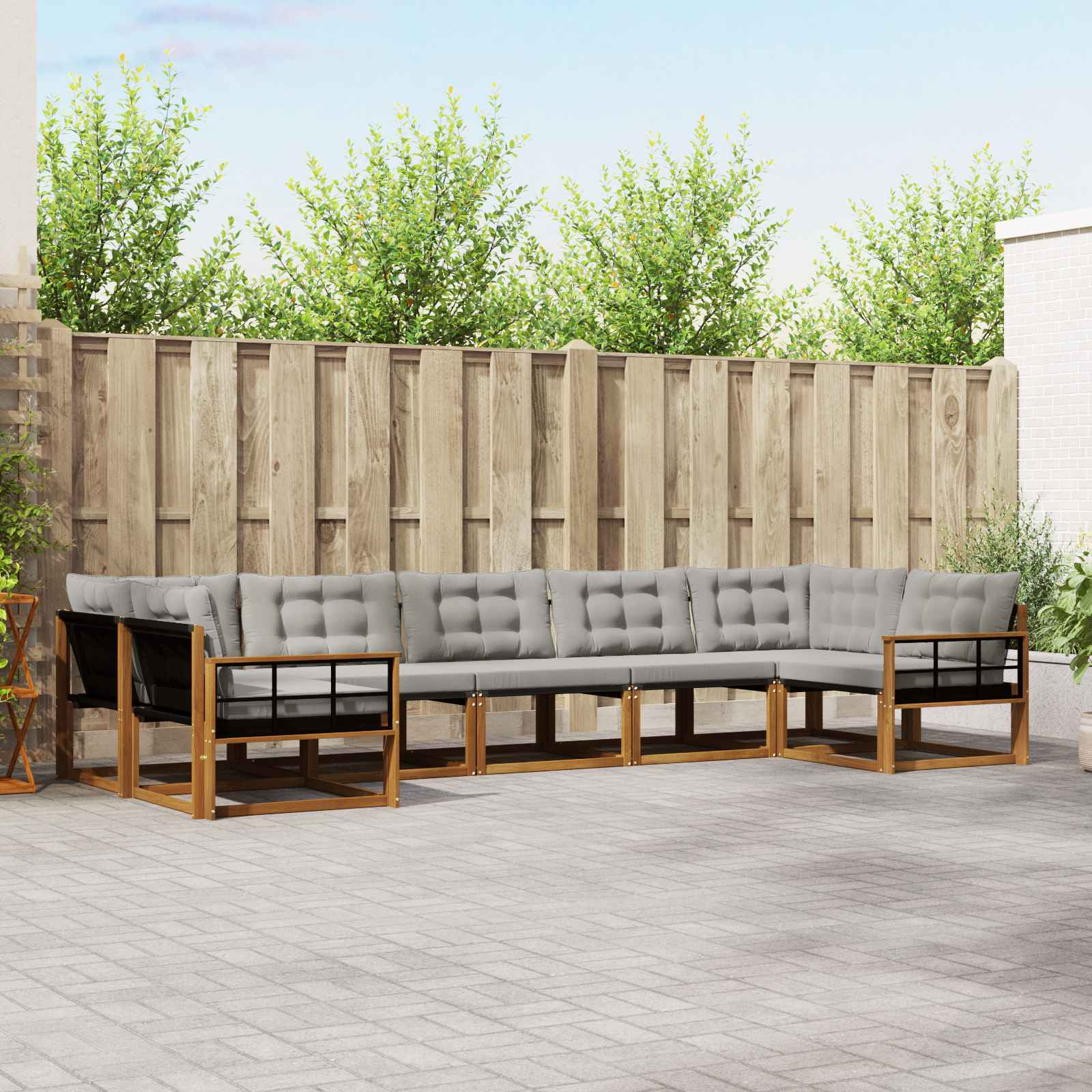 Setul ăsta de mobilier pentru exterior îmbină stilul cu utilitatea, fiind un punct de atracție super cool pentru grădina sau terasa ta. Designul modern, cu linii clare și detalii simple, adaugă eleganță și îți suportă relaxarea și întâlnirile cu prietenii. E făcut din lemn masiv de acacia, așa că e rezistent și arată grozav pe termen lung, perfect pentru cine caută atât practicitate cât și un design fain în mobilierul de exterior.