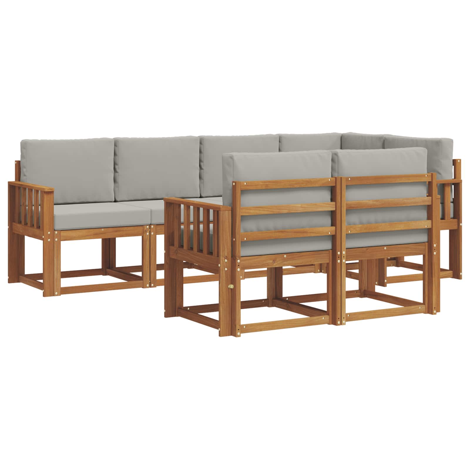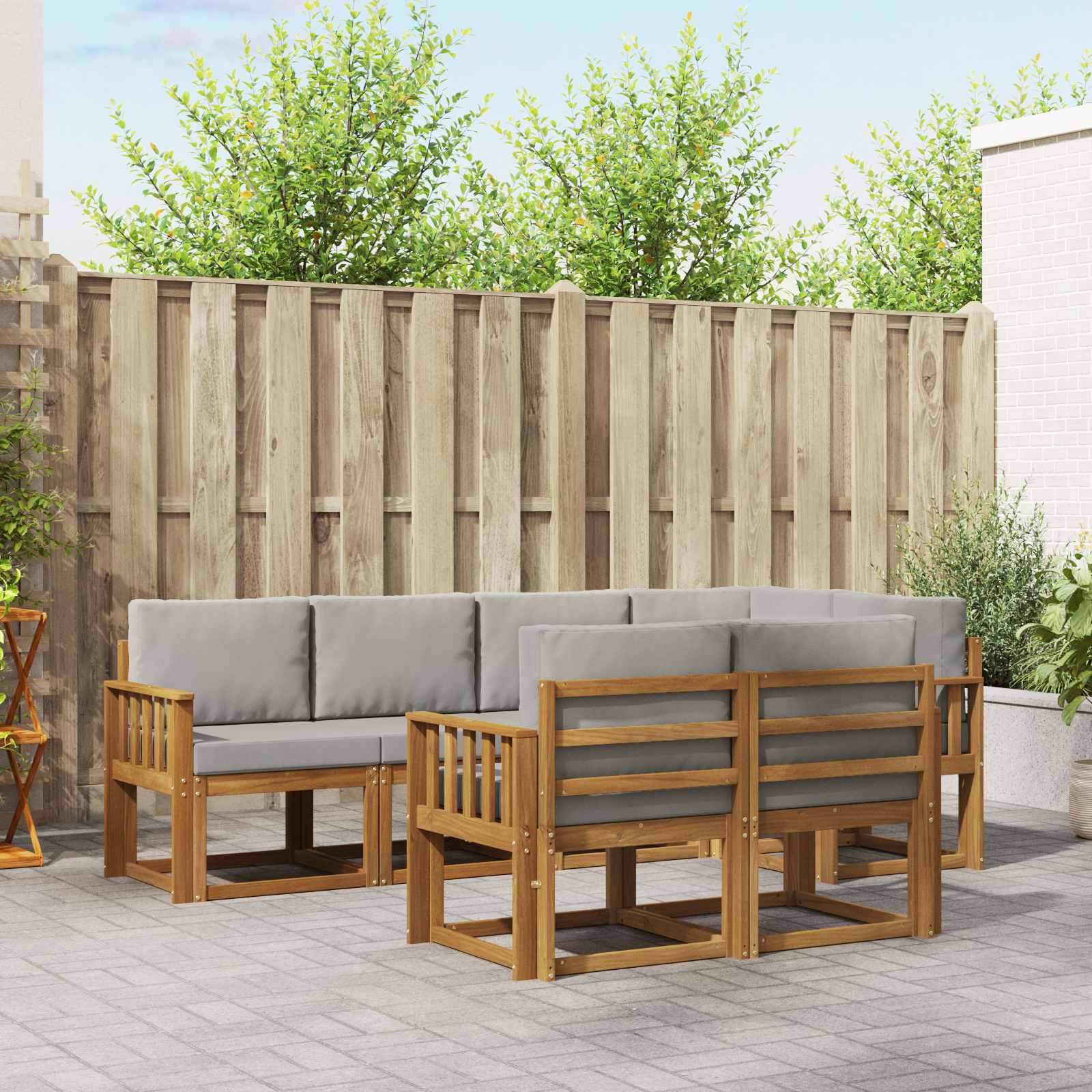 Setul de canapele secționale pentru exterior e o adăugare grozavă pentru orice grădină, patio sau zonă de lângă piscină. E din lemn masiv de acacia, așa că e super durabil și elegant. Designul modern, simplu și funcțional, îl face ideal pentru cei care iubesc liniile curate și minimalistul. Fie că distragi oaspeți sau pur și simplu te relaxezi, acest set oferă confort și stil.