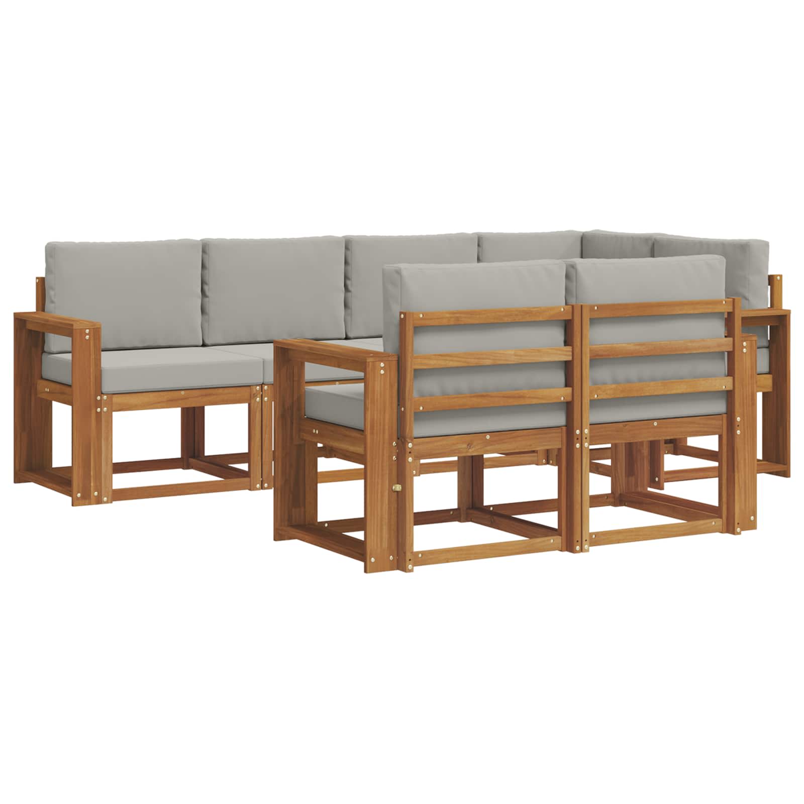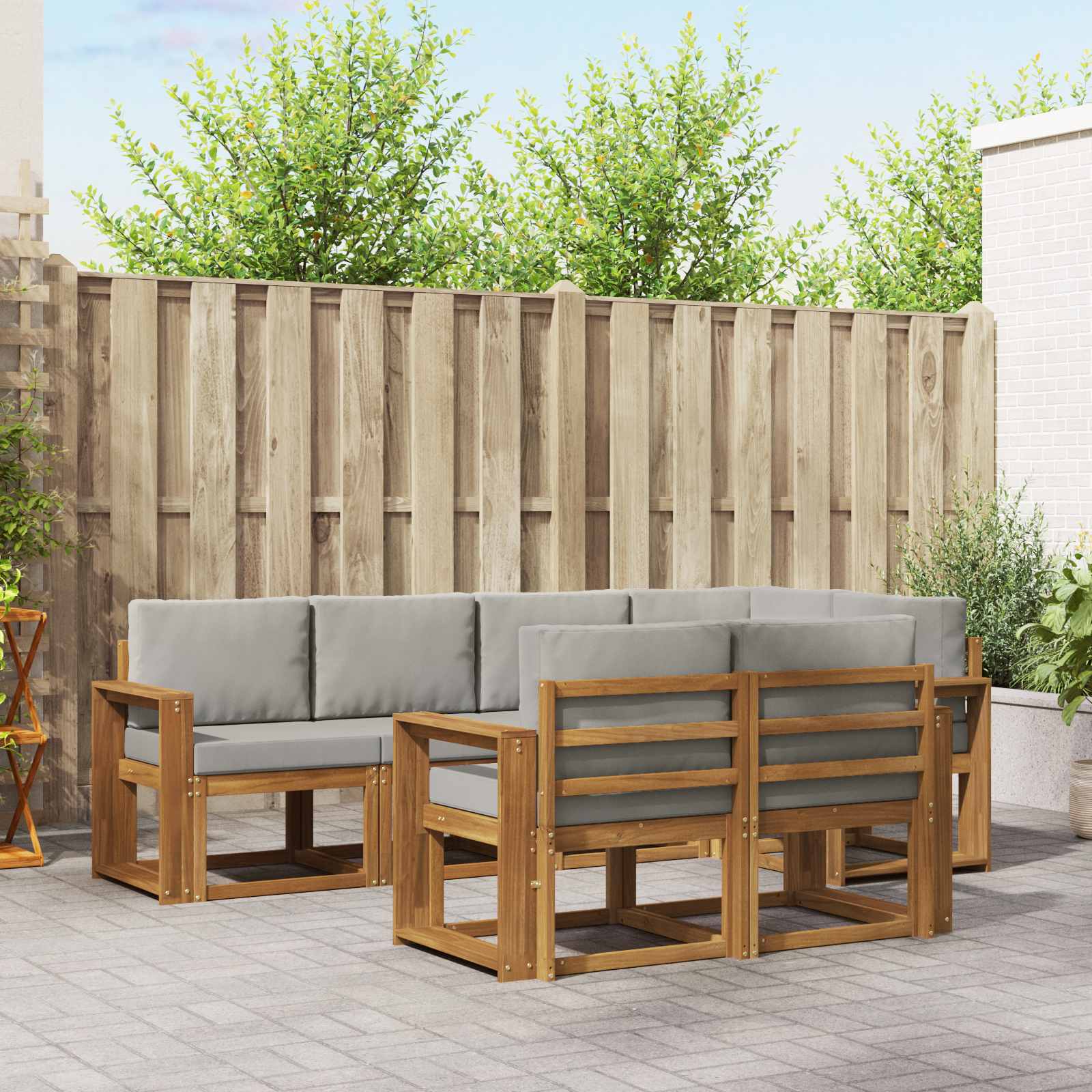 Setul de canapele secționale pentru exterior e o adăugare grozavă pentru orice grădină, patio sau zonă de lângă piscină. E din lemn masiv de acacia, așa că e super durabil și elegant. Designul modern, simplu și funcțional, îl face ideal pentru cei care iubesc liniile curate și minimalistul. Fie că distragi oaspeți sau pur și simplu te relaxezi, acest set oferă confort și stil.