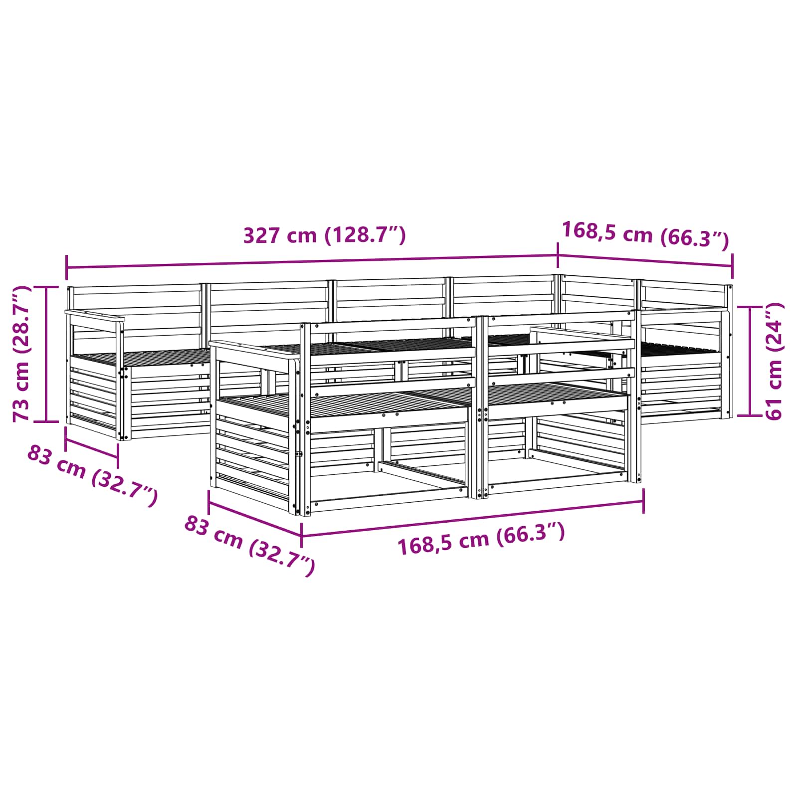 - 6 x Canapea Mediană: 79 x 83 x 73 cm (LxWxH)