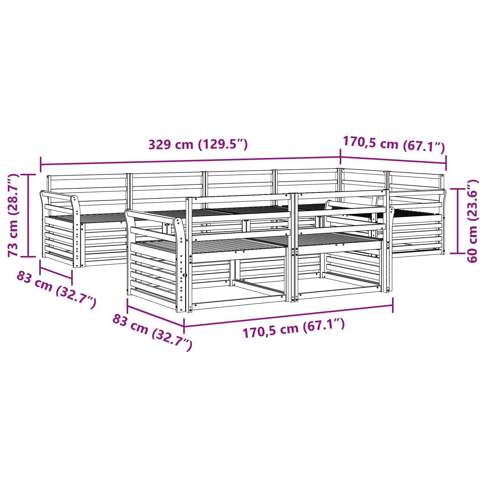 - 6 x Canapea medie: 79 x 83 x 73 cm (LxWxH)