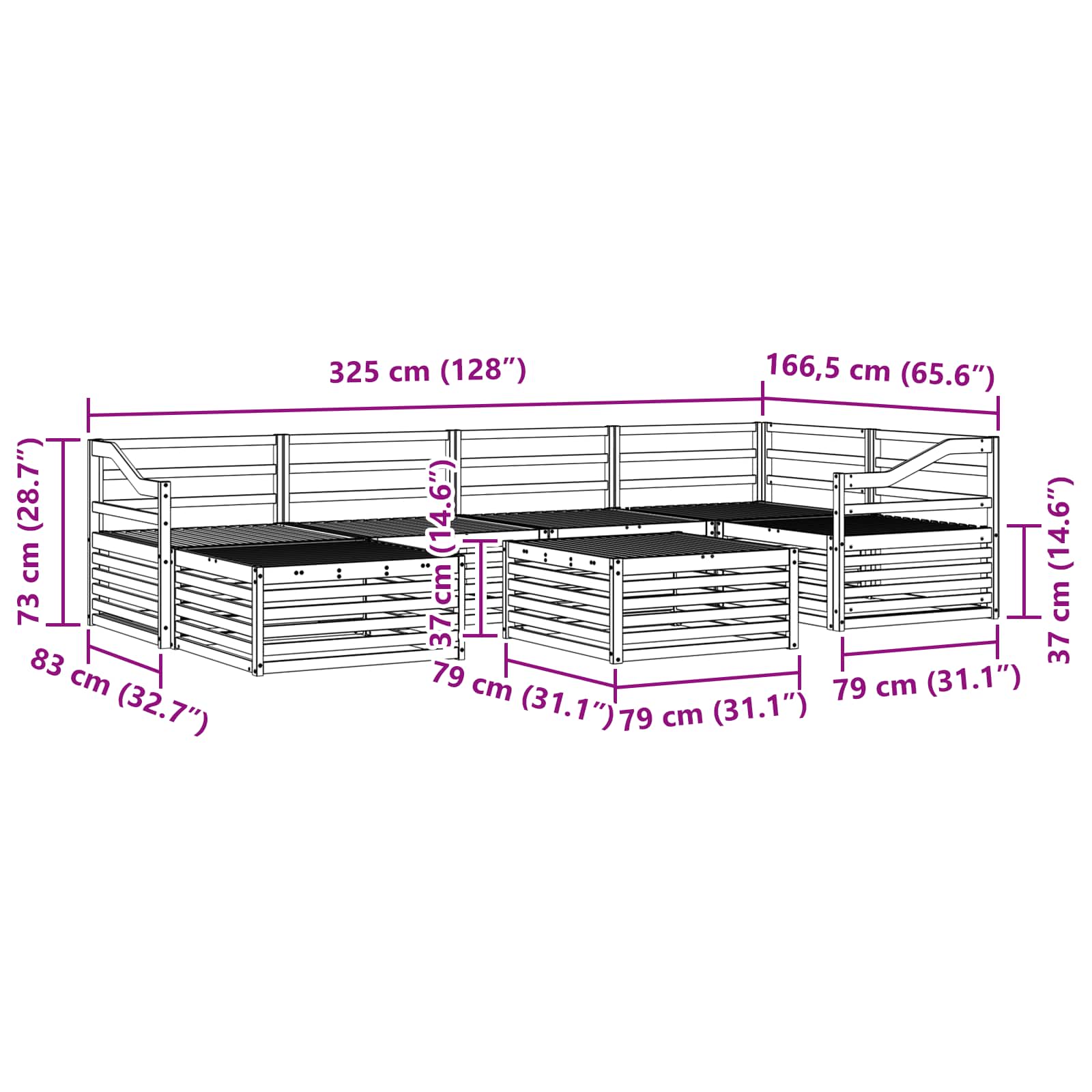 - 4 x Canapea din mijloc: 79 x 83 x 73 cm (Lxlxh)