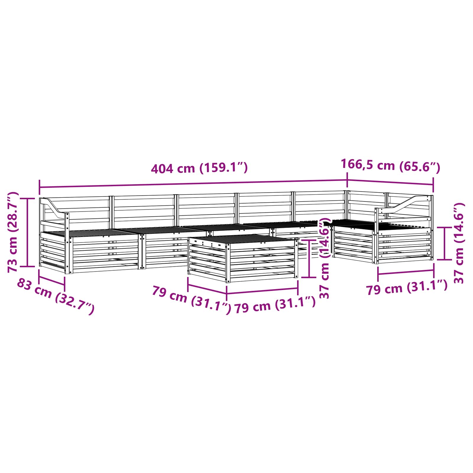 - 5 x Canapea din mijloc: 79 x 83 x 73 cm (LxWxH)