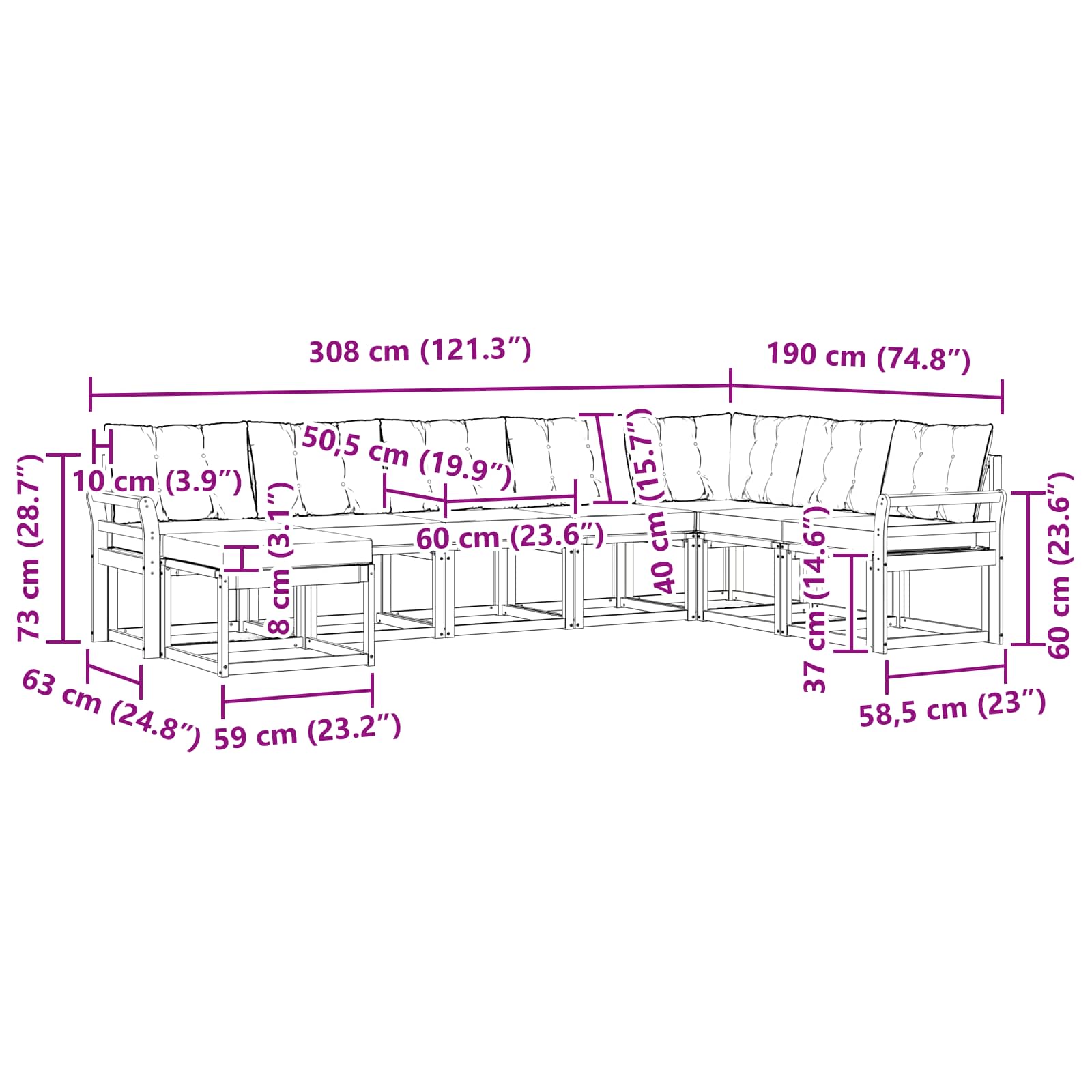 - 8 x Pernă de spate: 60 x 40 x 10 cm (LxWxH)
