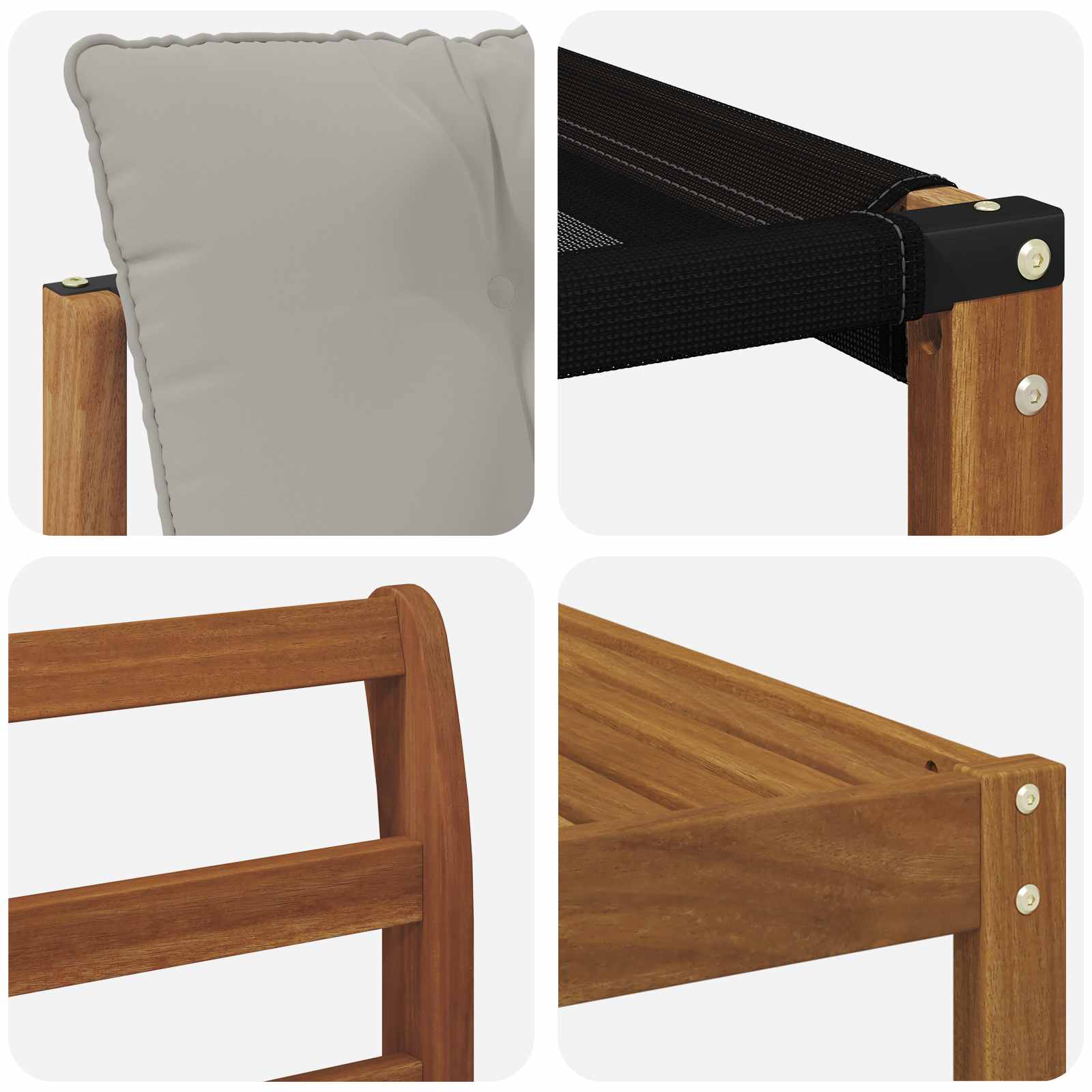 - Material: Lemn solid de acacia și textilene
