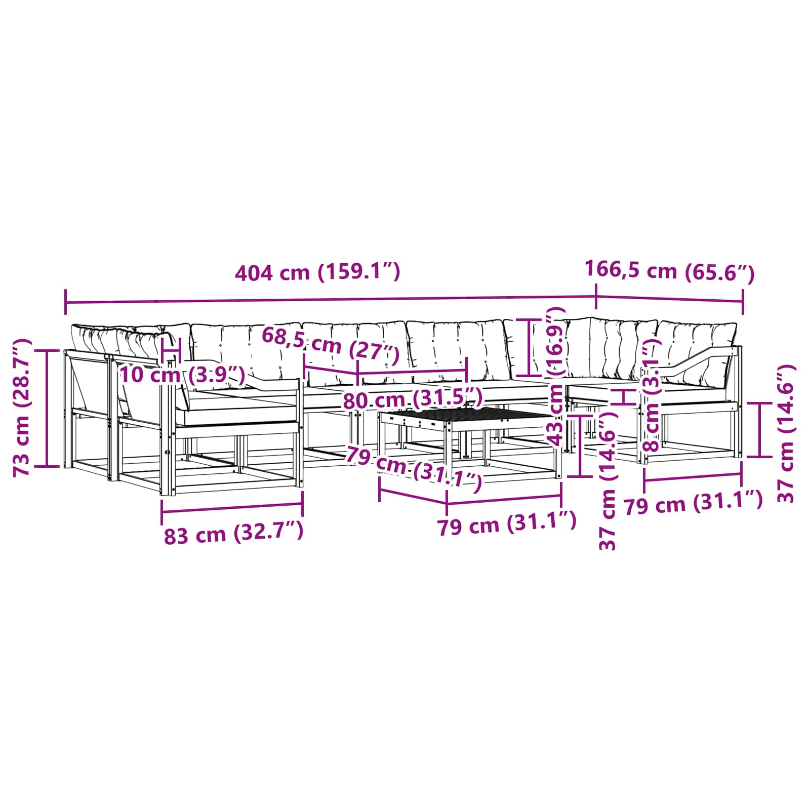 - 9 x Pernă de spate: 80 x 43 x 10 cm (LxWxH)