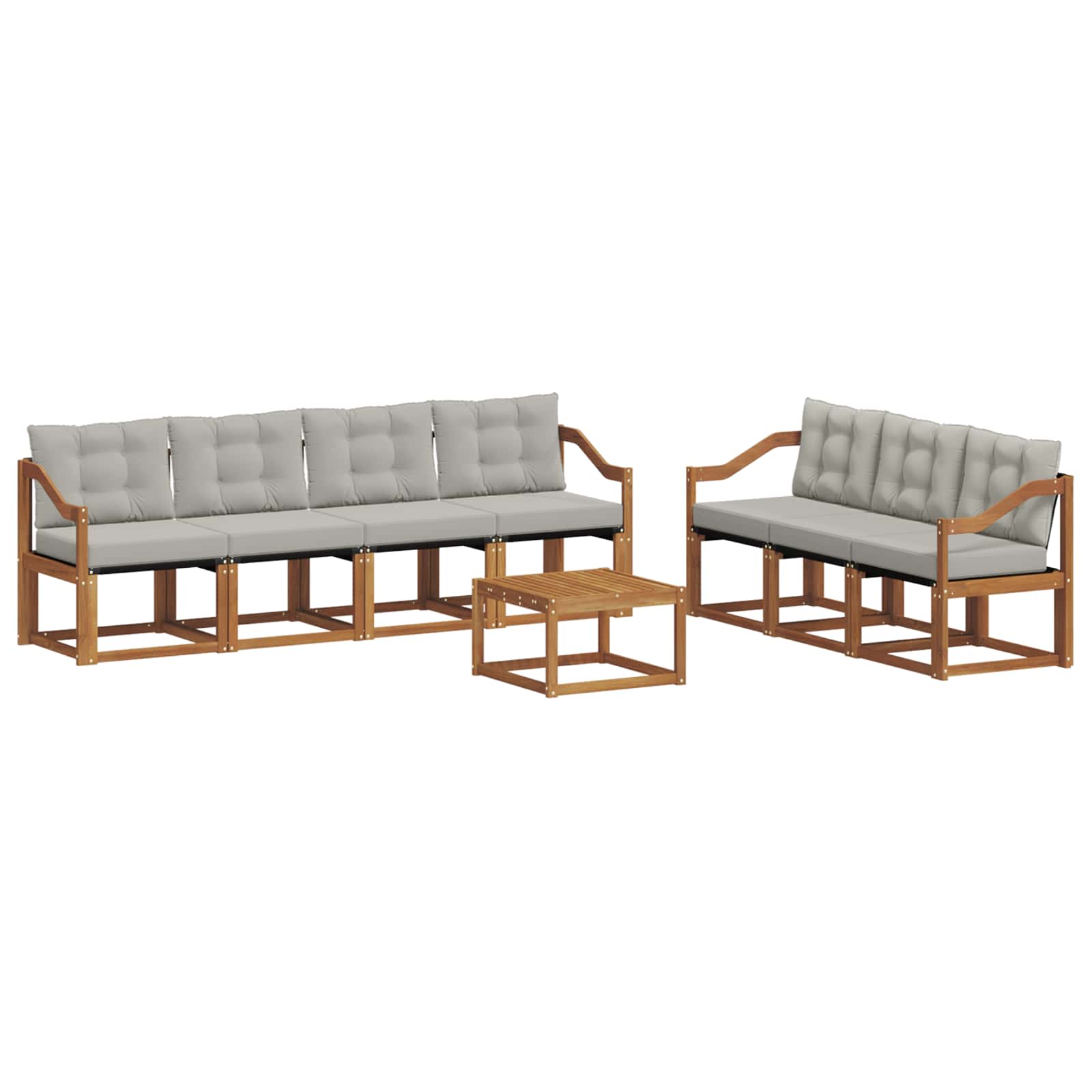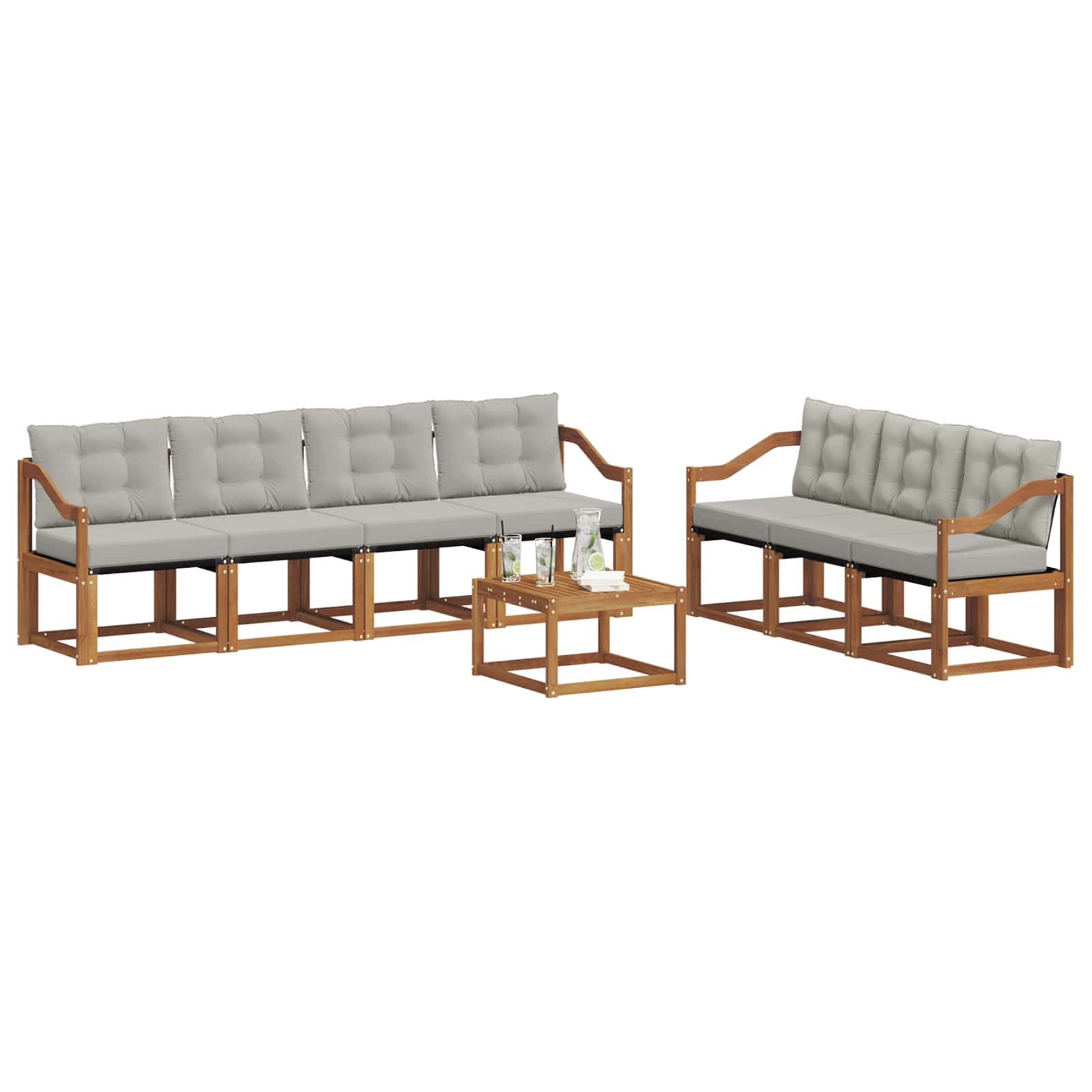 Setul ăsta de mobilier de exterior îmbină stilul cu funcționalitatea, făcând orice grădină sau terasă să arate bestial. Are un design modern, cu linii clare și detalii simple care adaugă eleganță, dar te ajută și să te relaxezi sau să te întâlnești cu prietenii afară. Făcut din lemn masiv de acacia, setul e durabil și arată bine pe termen lung, perfect pentru cine caută un design rafinat și practic în mobilierul de exterior.
