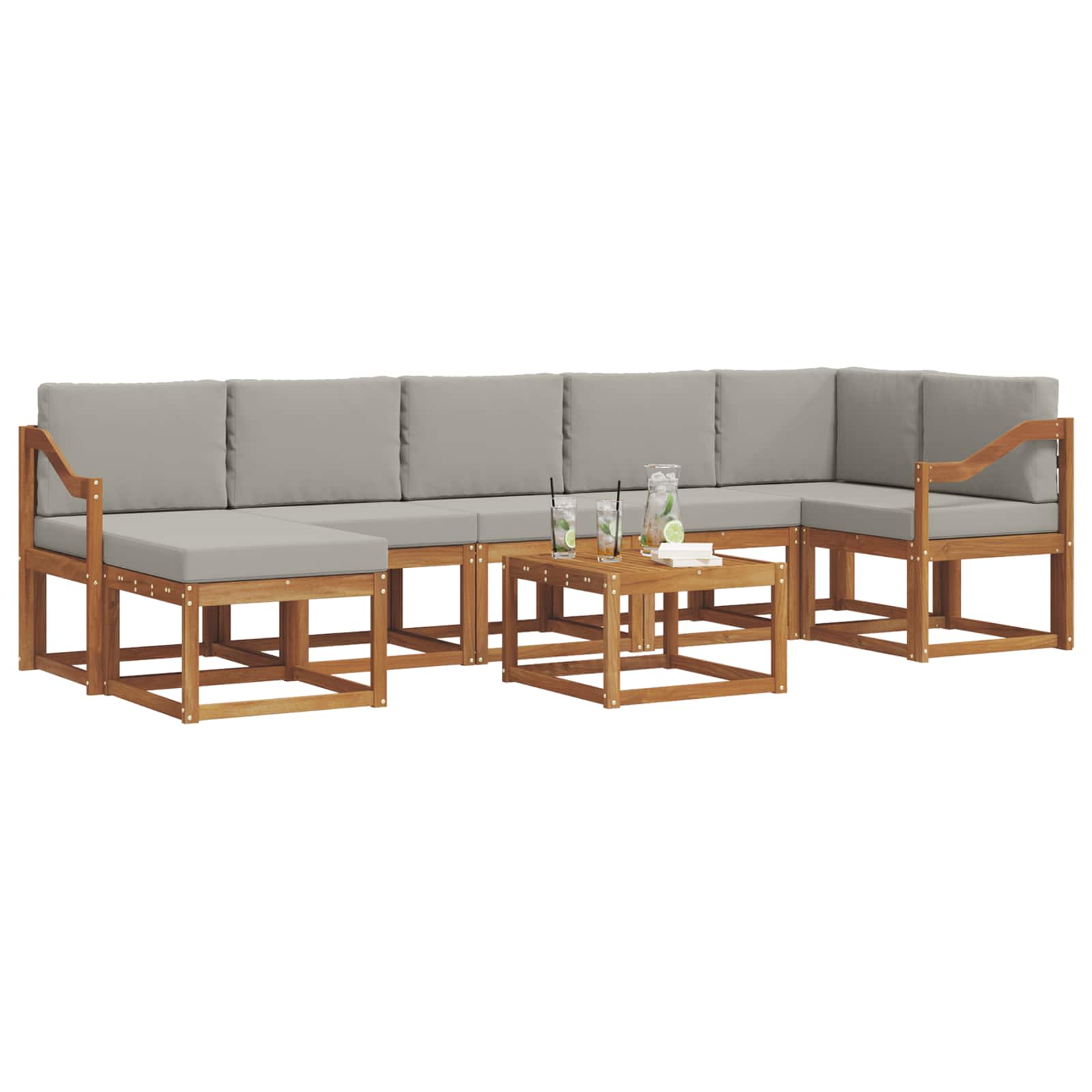 Acest set de canapele secționale este exemplul perfect de simplitate și funcționalitate modernă, având un design curat și o ornamentație minimă. Creat pentru exterior, se integrează perfect în natură, fiind fabricat din lemn de acacia rezistent. Modular, poți rearranja segmentele pentru a se potrivi în orice spațiu, fie că este vorba de o terasă, o grădină sau lângă piscină, făcându-l perfect pentru relaxare sau petreceri. Transformă-ți spațiul exterior într-un loc versatil de bunăstare!