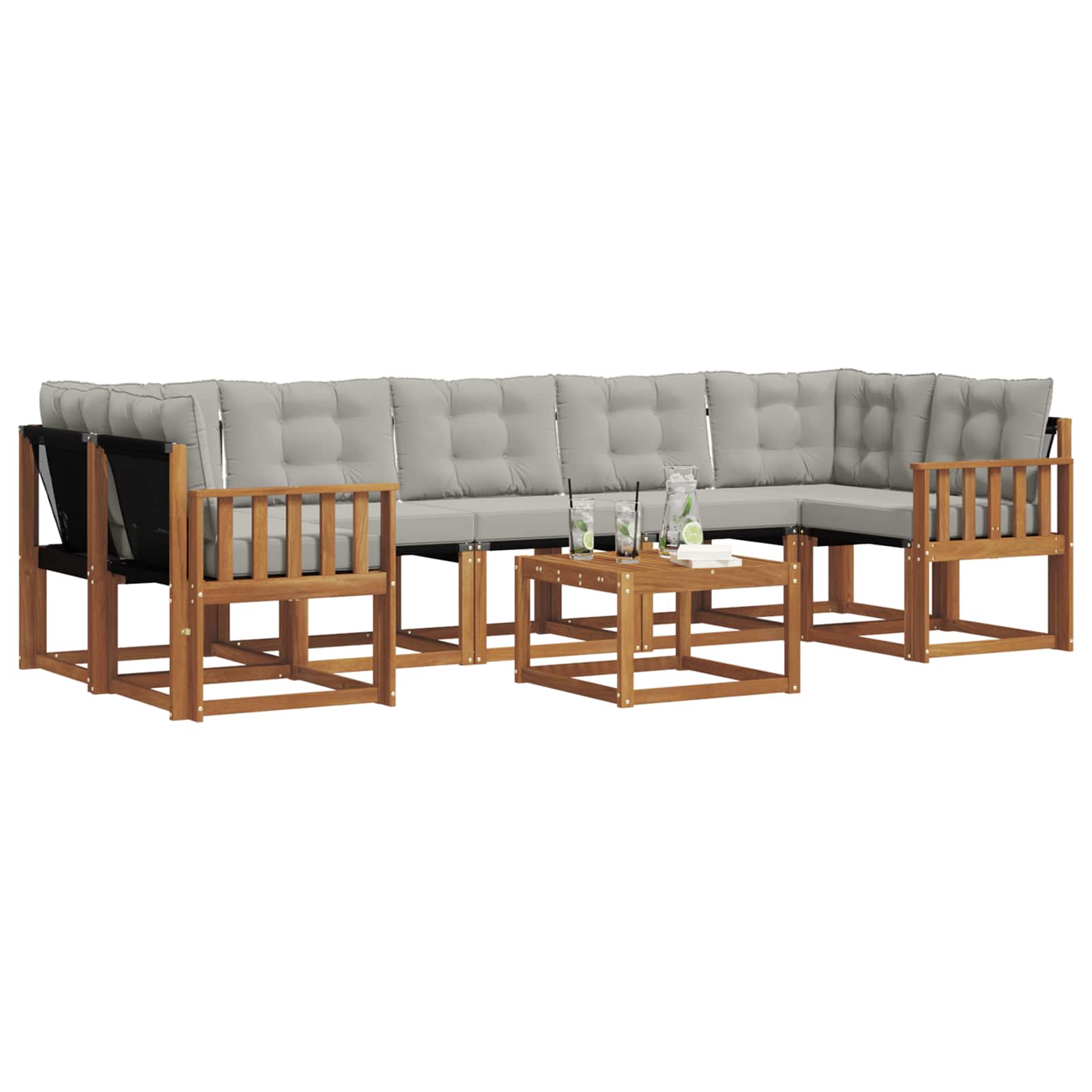 Acest set de canapea modern aduce stil și confort în aer liber, ideal pentru cei care vor să se relaxeze sub cerul liber. Designul său elegant, cu nuanțe de maro, îl face potrivit pentru orice grădină sau zonă de piscină. Combină căldura lemnului de acacia cu confortul textilenelor, oferind un mediu primitor atât pentru petreceri, cât și pentru momentele tale de răsfăț.